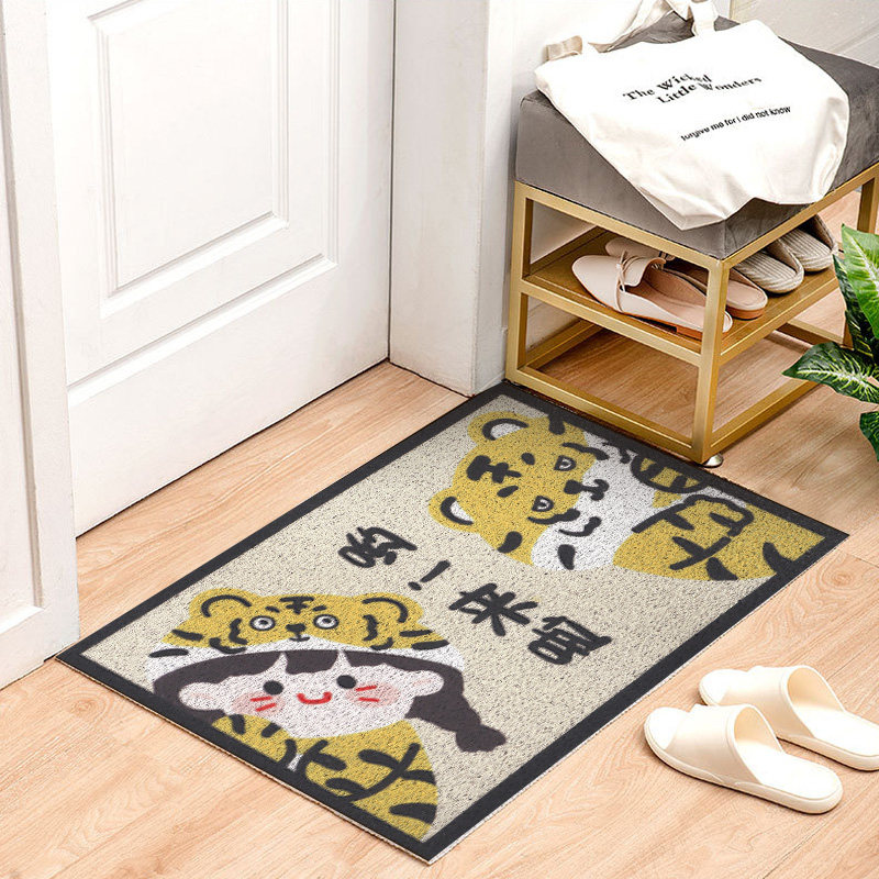 Cute Tiger Sesame Cheese Sauce in the door Entrance Floor Mats Doors Silk Loop Door Cushions Can Cut Rug Non-slip Soft