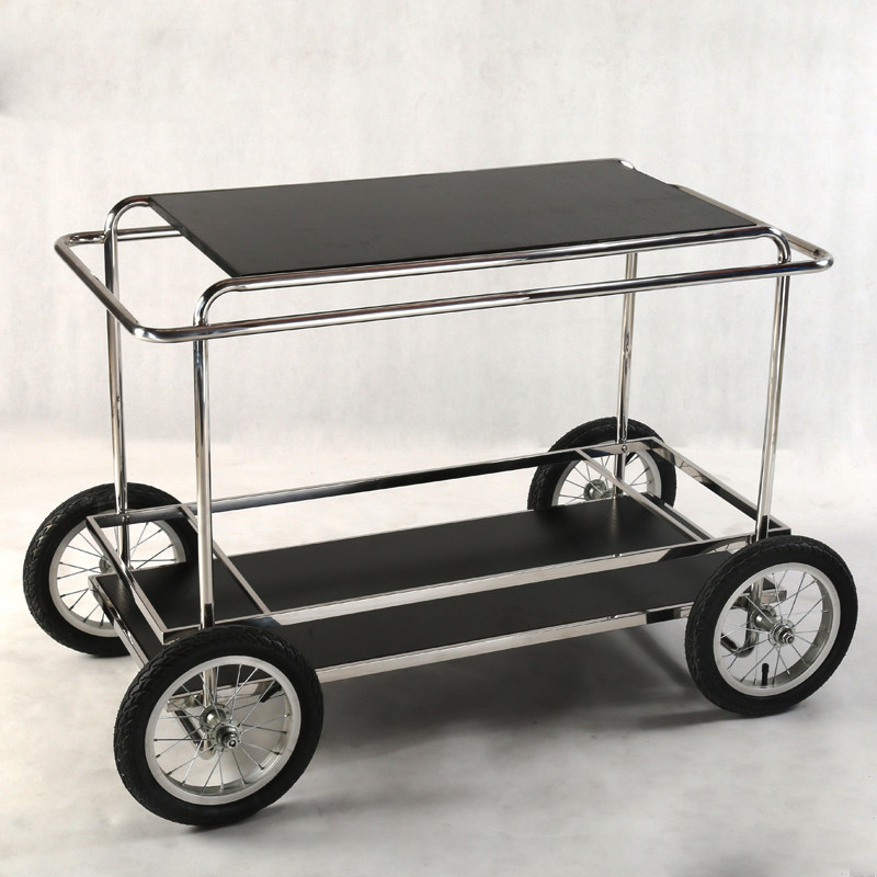 Medieval ins wind stainless steel movable tire cart dining room commercial household double-layer rack simple dining car