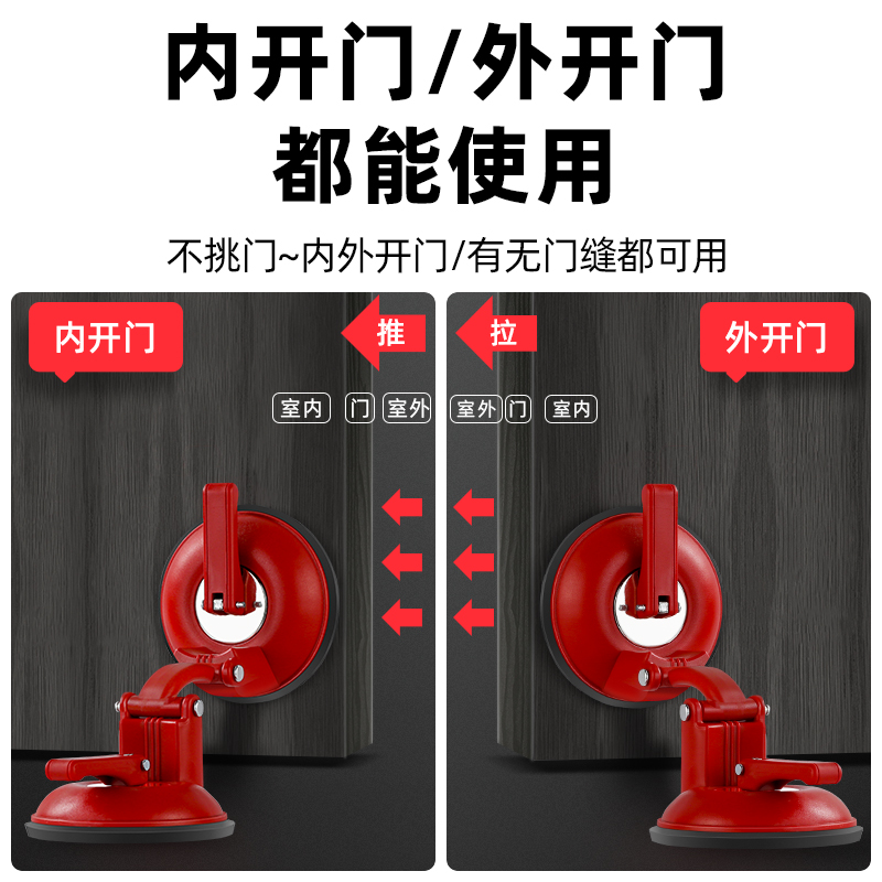 (Double suction cup door stopper) - universal for both inner and outer door opening, send auxiliary stickers (double suction cup door stopper comes with an alarm) - any door can be used, send auxiliary stickers (single suction cup door stopper) - inside