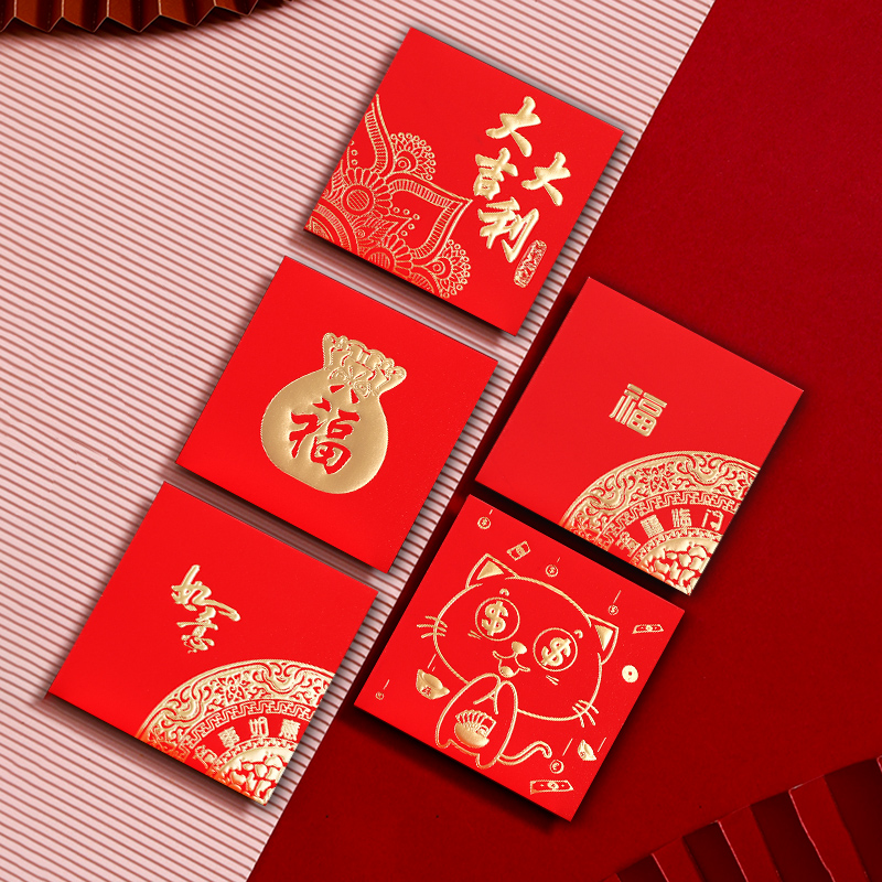 New Year 2022 square red envelope bag creative personality cartoon red envelope blessing character auspicious bronzing Lee is a custom seal