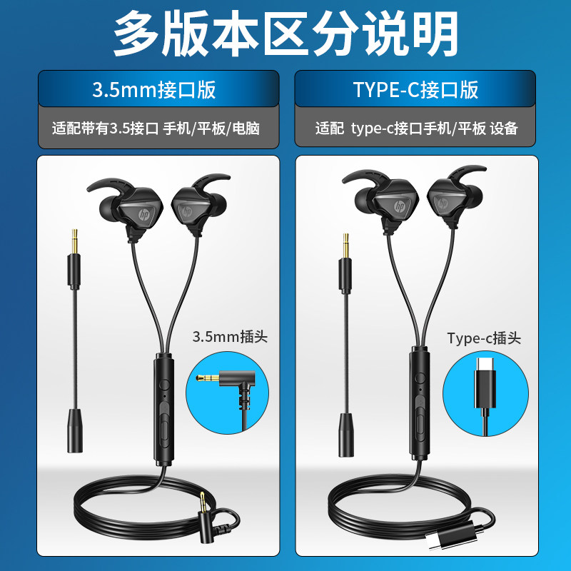 HP HP gaming headphones In-ear Wired Computer Headphones Versatile Listening Sound Arguments 7 1 Channel Electric Race Noise Reduction Earmmy With Long Microphone Eat Chicken K Song Live High Sound Quality Tepyc Round Hole