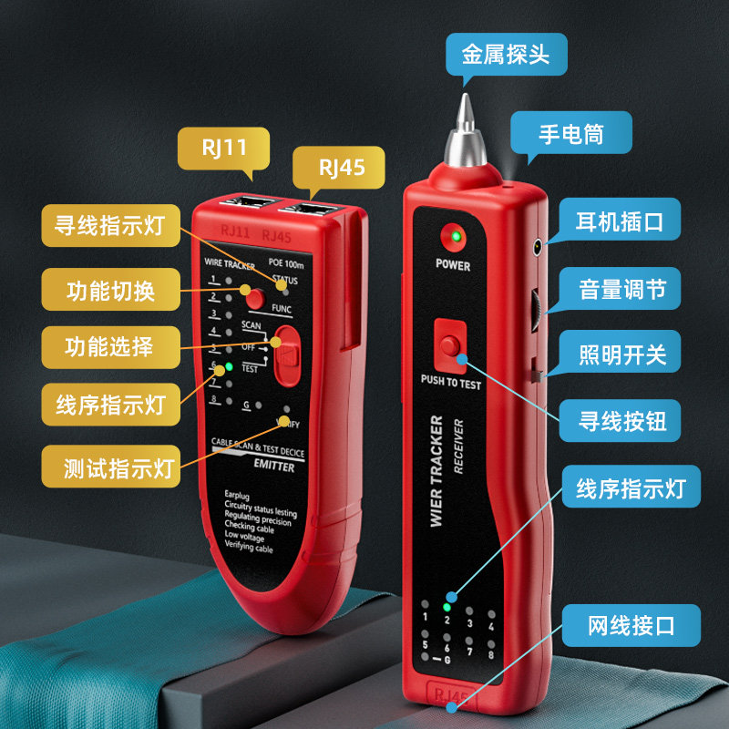 Network Wire Finder Multifunction Network Tour Wire Gauge Wire Finder Wireline Finder Network Signal Through-Break Tool Equipment Room Challine Pair Wire-Looking Wire Telephone Line Signal Detector Suit Anti-Interference Detection-Taobao