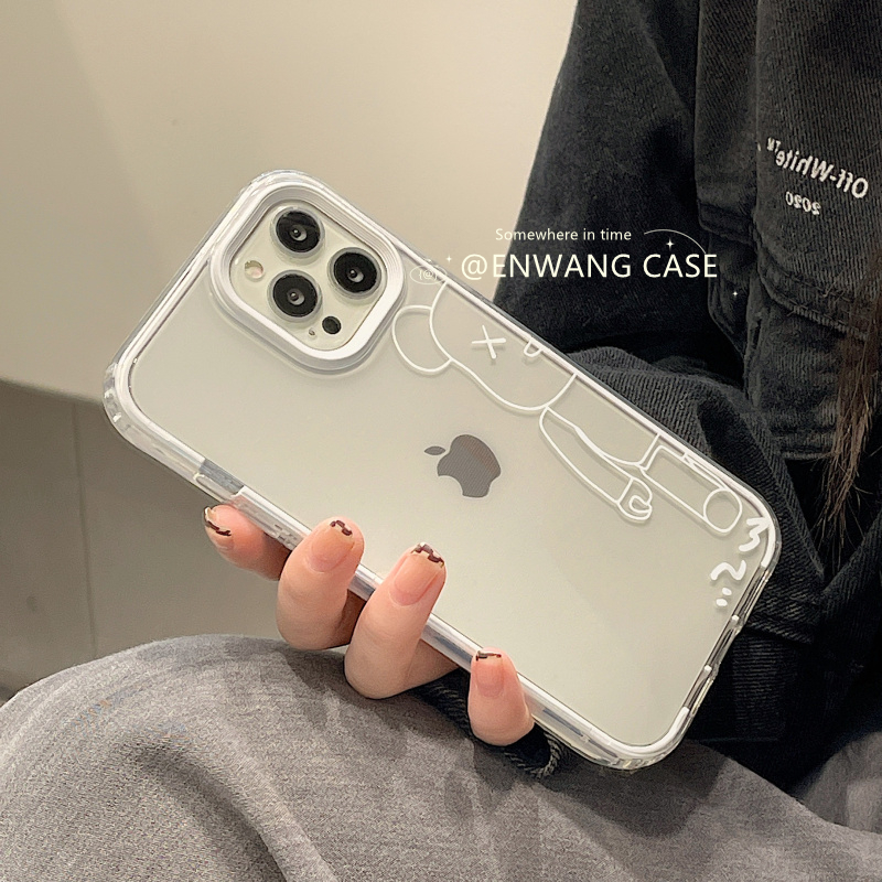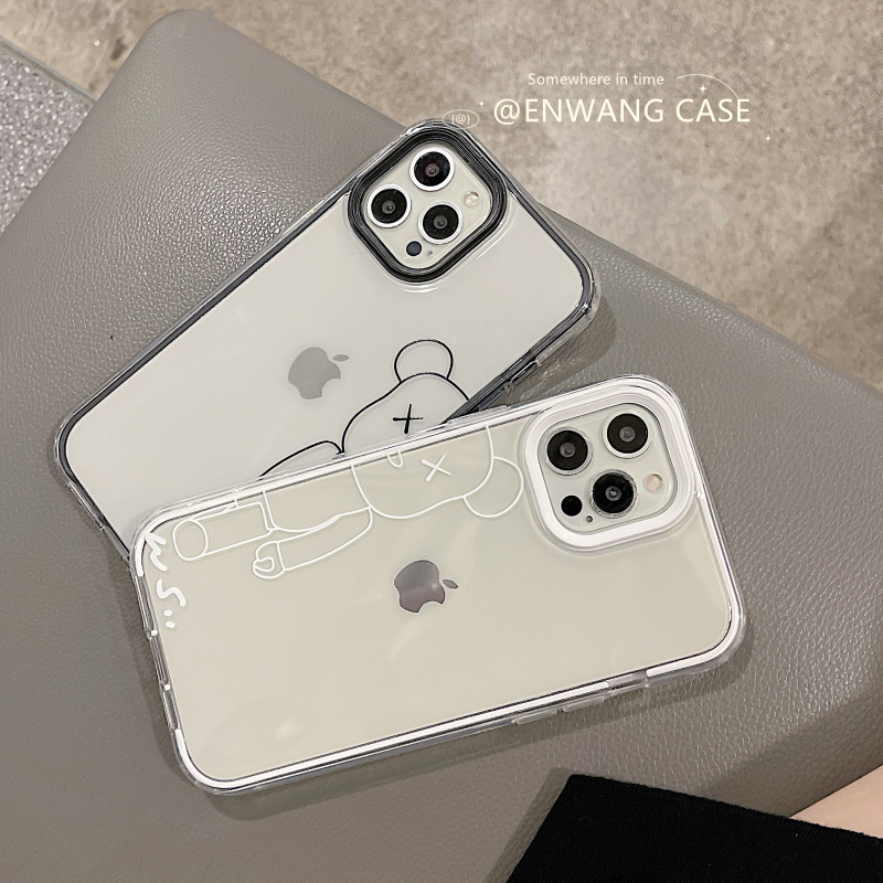 Enwang couple ins tide brand cartoon line violent bear apple 11 12iphone13promax mobile phone protective shell xs xr new 8p 7plus creative