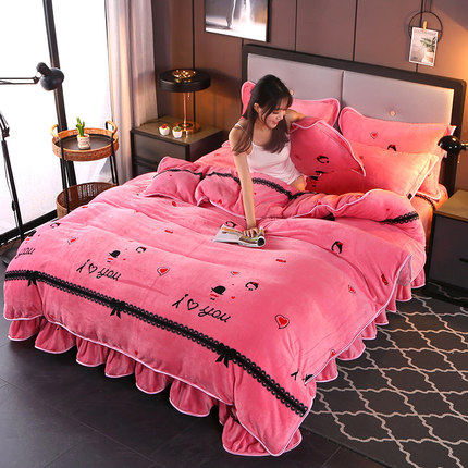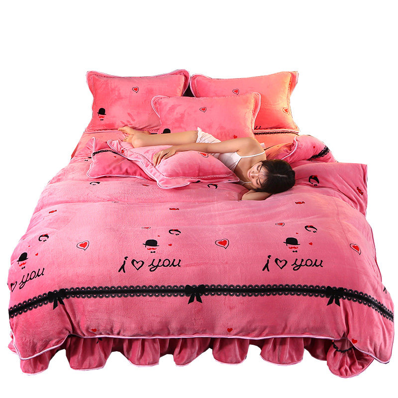 Golden sable velvet skirt four-piece set coral velvet thickened plus fleece winter duvet single quilt cover milk velvet double-sided short velvet product