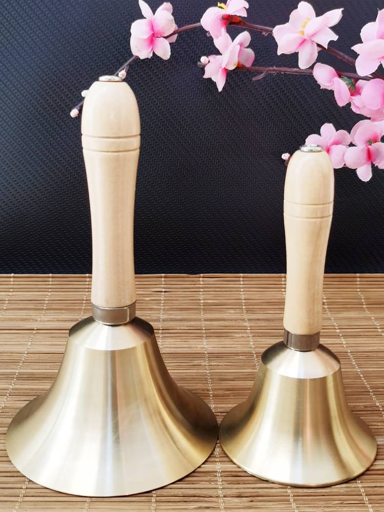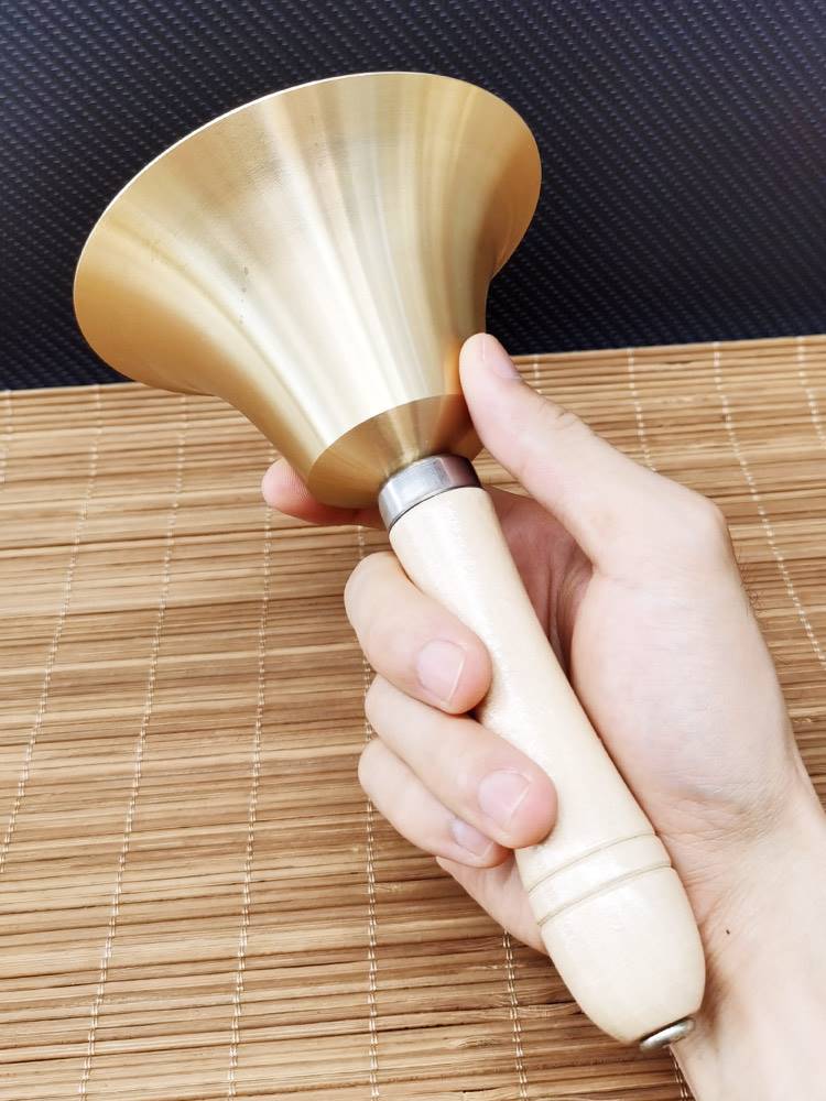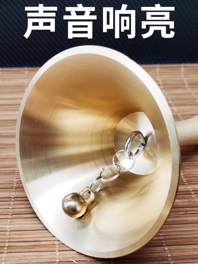 Special large number-wooden handle brass bell (super loud bell) enlarged number-wood handle brass bell (high ring bell) large number full brass glossy bell large number carved bell-bell-ancient cyan large sculpted flower bell