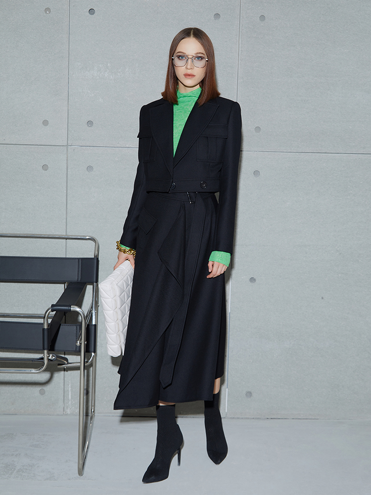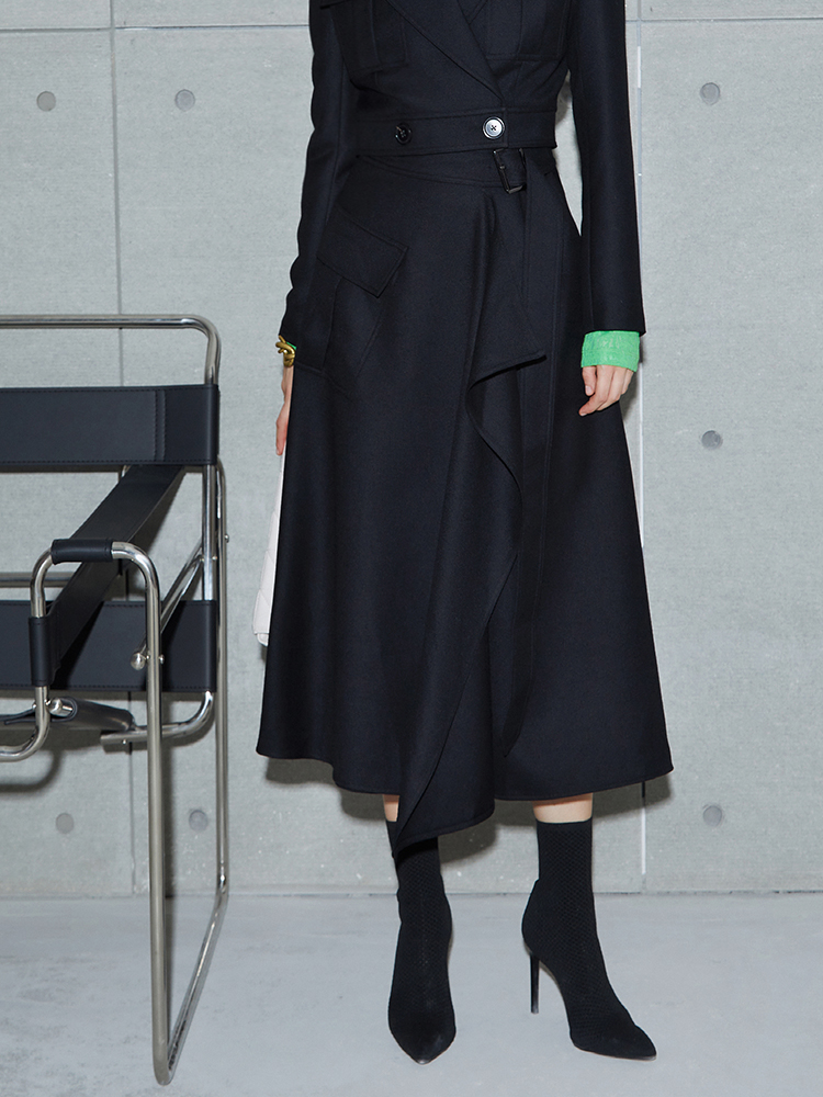 Boss Z Asymmetrical Layered Skirt Women One-Piece Design Simple and Versatile A-Line Wool Skirt Women