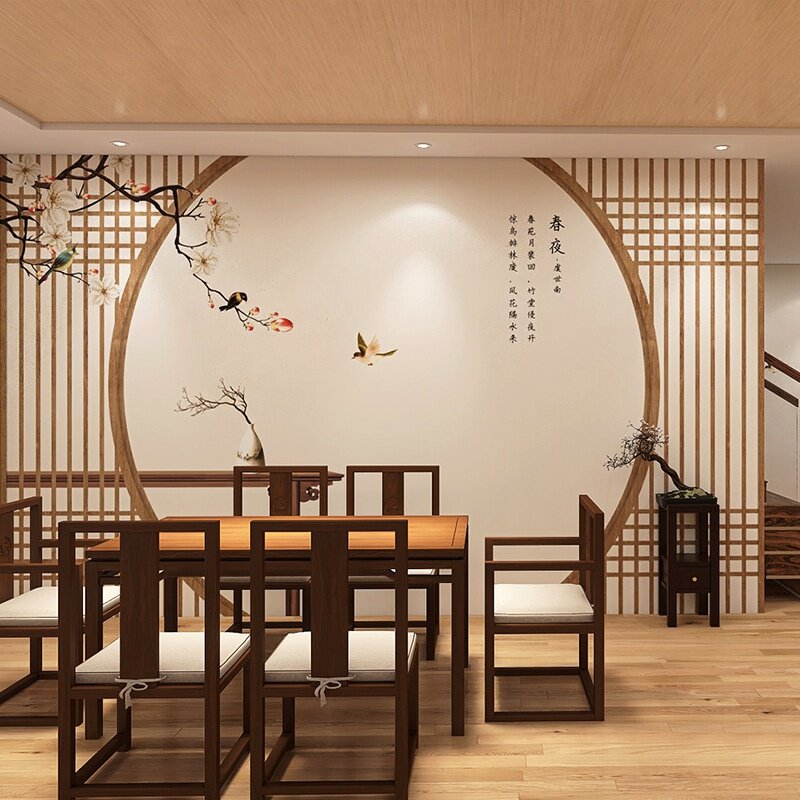 New Chinese classical bamboo wood fiber TV background wall hotel office integrated wall panel sofa decorative wall panel