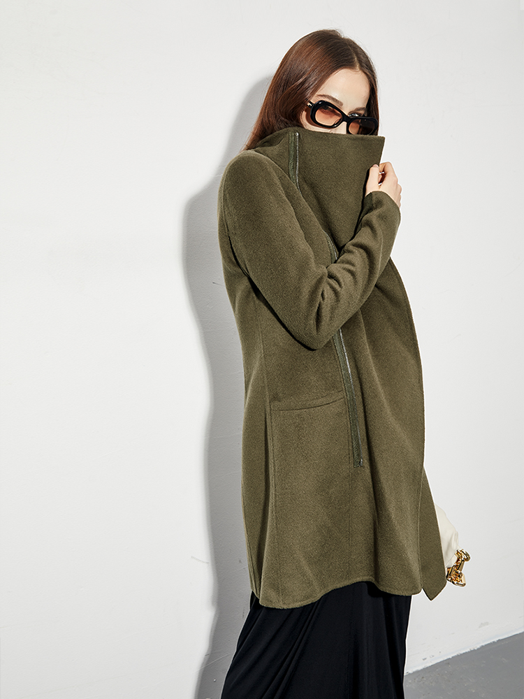 Z boss RO classic series square collar woolen short coat female Australian double-sided cashmere sewing coat female