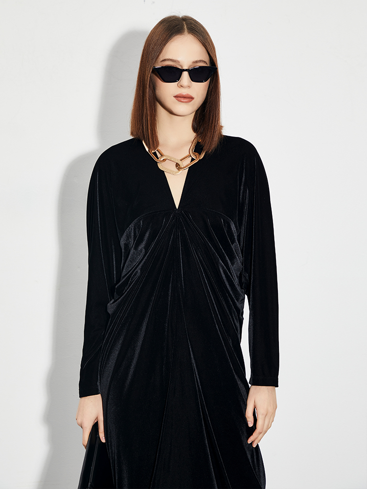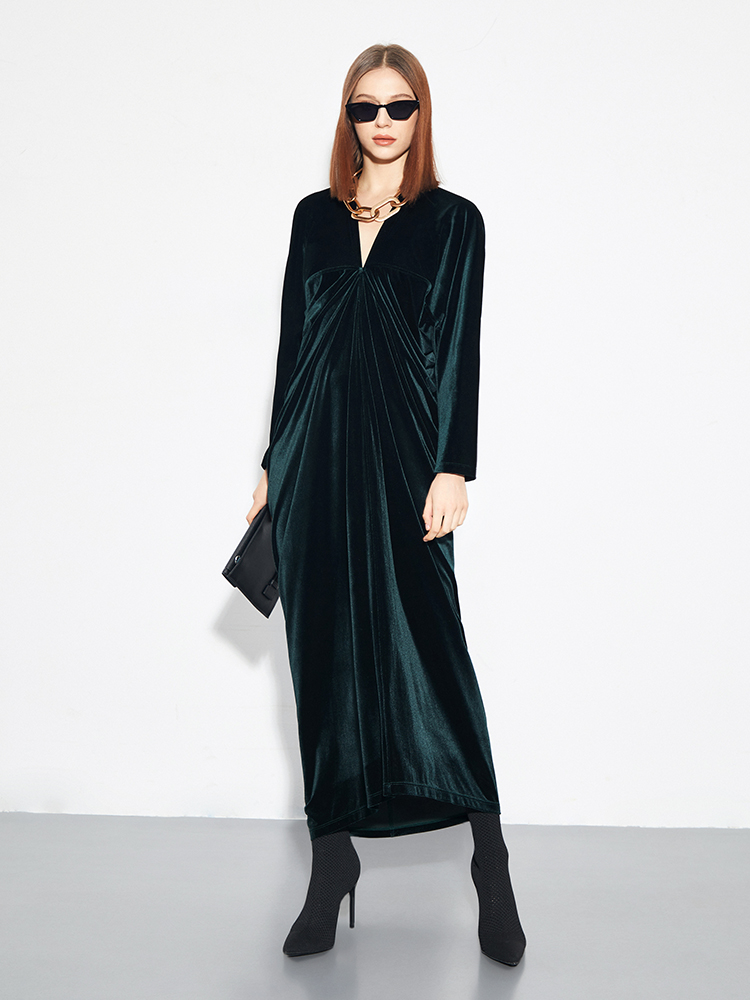 Z boss X-shaped dress one piece back to front wrap cut velvet irregular hem dress female