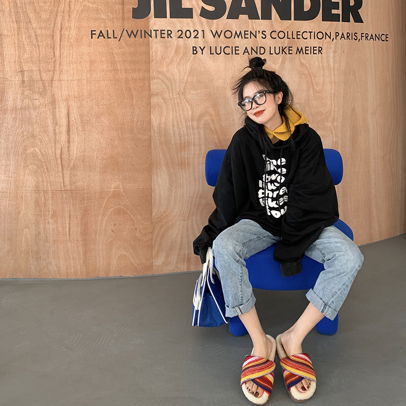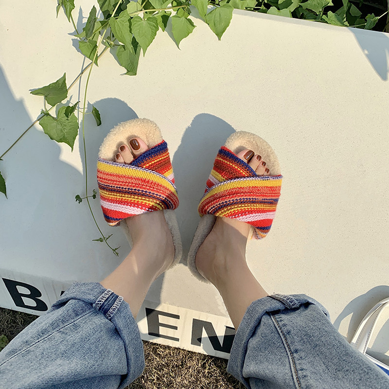 Abao Family Small Crowdsourced Thick Knit Fur Slippers Female Outwear Autumn Winter New Pine Pastry Bottom 100 Hitch