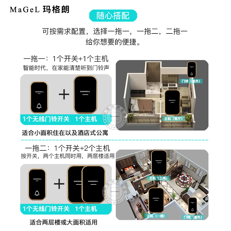 Home Wireless doorbell switch Self-generation without battery Rain-proof and waterproof ultra Long distance Elderly intelligent Scream-Taobao