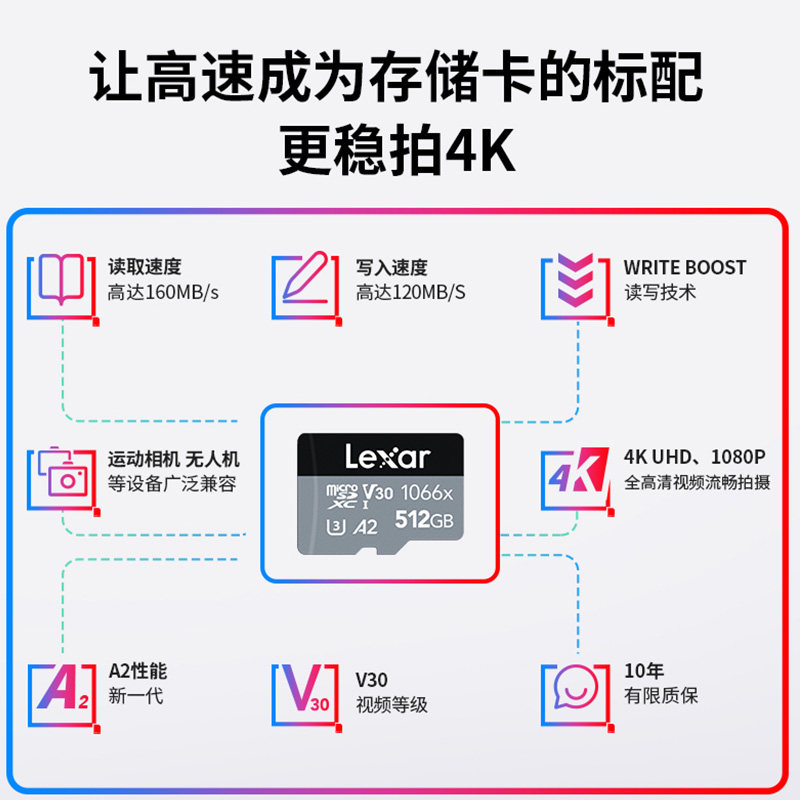 (Special for Action2) Lexar tf card memory card 128g DJI Osmo action camera memory card digital camera vlog video 4k high-speed minisd aerial photography mi