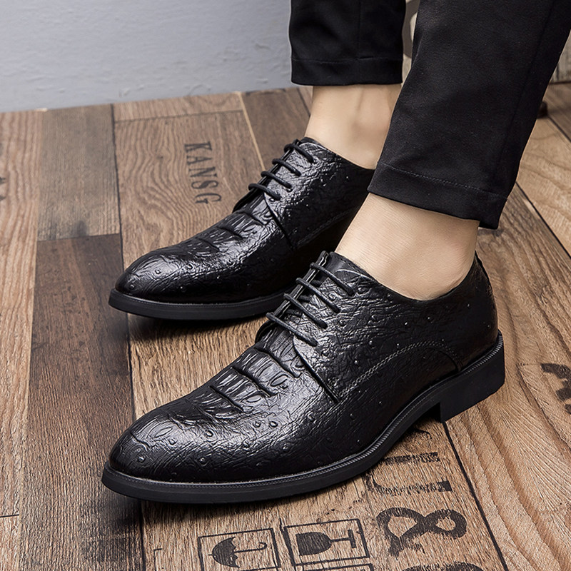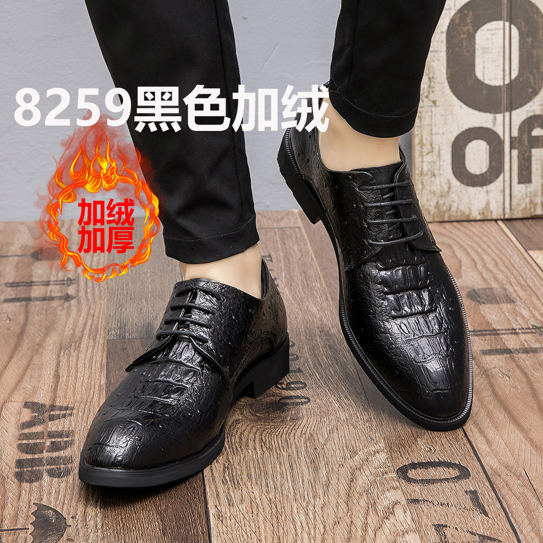 Autumn casual leather shoes leather trend men's formal wear pointed toe business British style crocodile pattern inner heightening men's shoes