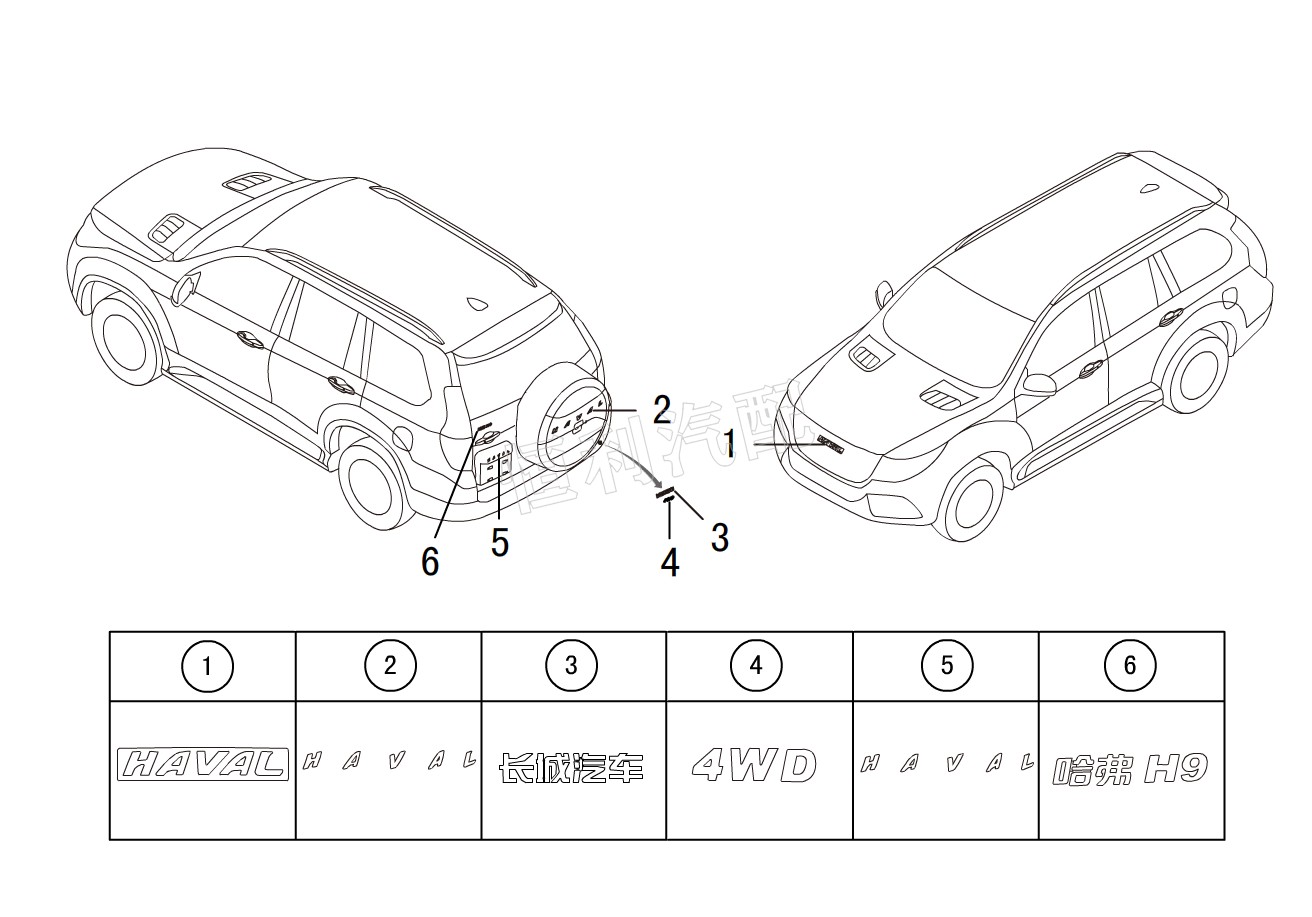 China Mesh Standard Red 4WD Haval H9 Great Wall Motor Spare Tire Logo HAVAL Tailgate Logo HAVAL Rear License Plate Logo HAVAL (excluding license plate) spare tire logo