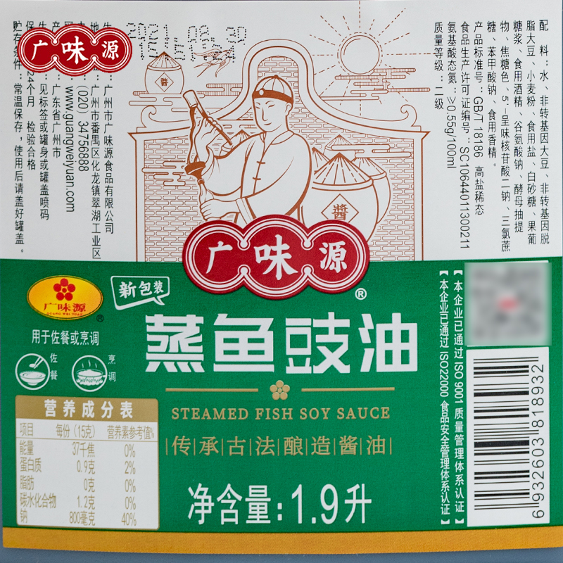 Guangweiyuan steamed fish soy sauce 1 9L brewed soy sauce canned seafood steamed fish soy sauce cold stir fry seasoning