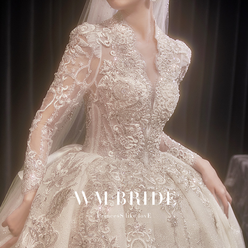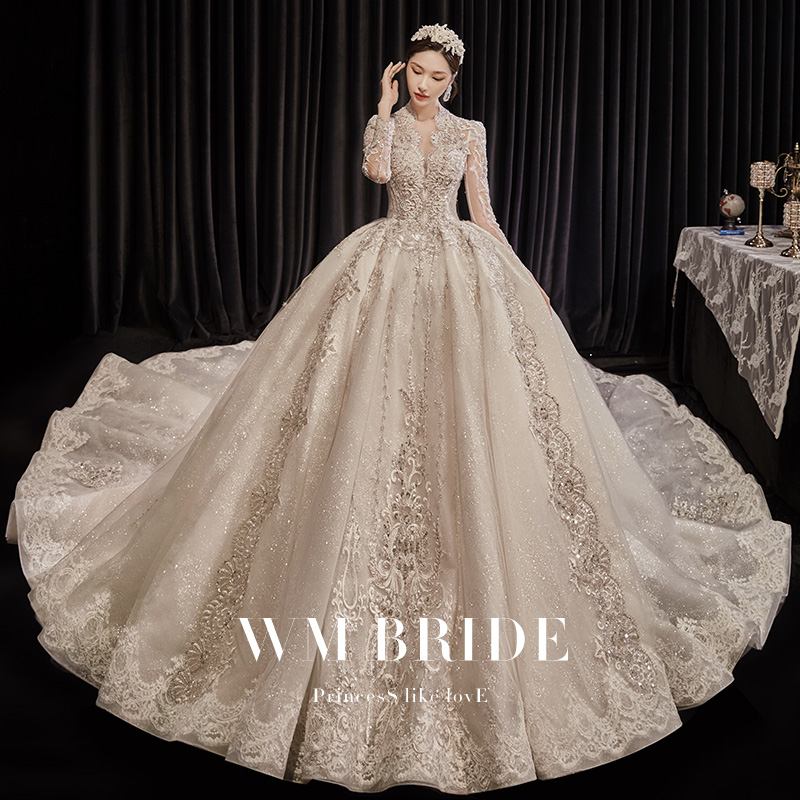 "Xiangxie sunset" wedding dress 2021 New main yarn Bride wedding heavy industry senior sense long trailing long sleeve temperament