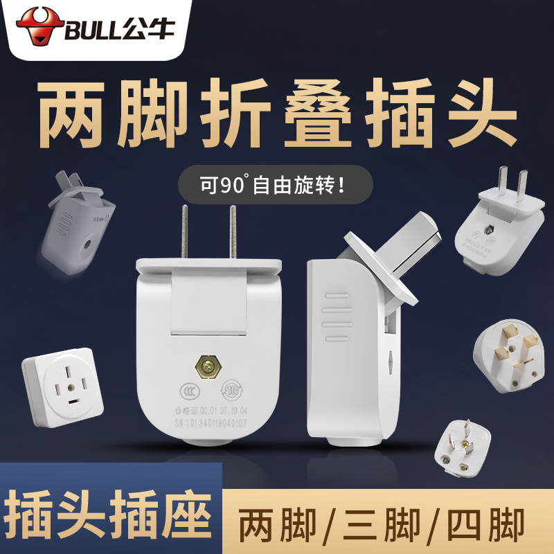 Bull socket mini wiring head rotating ultra-thin plug-in converter extension cord household folding plug 10A