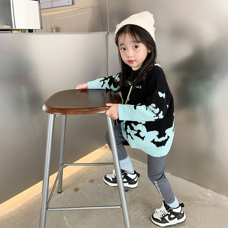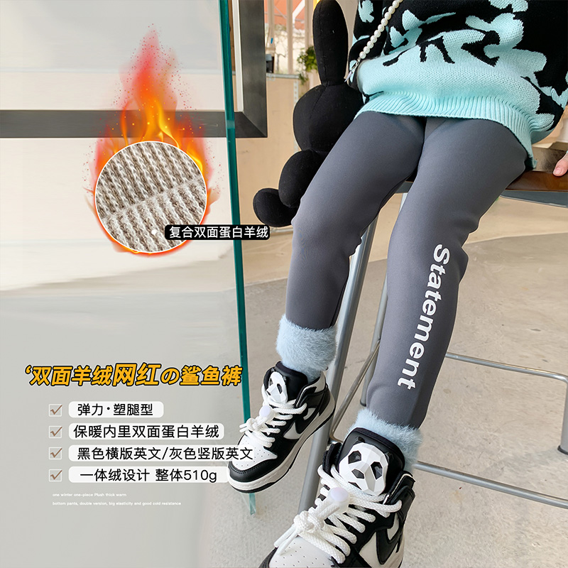 Girls plus velvet pants outside wearing foreign sports warm thick cotton autumn and winter clothes baby shark pants children inside pants
