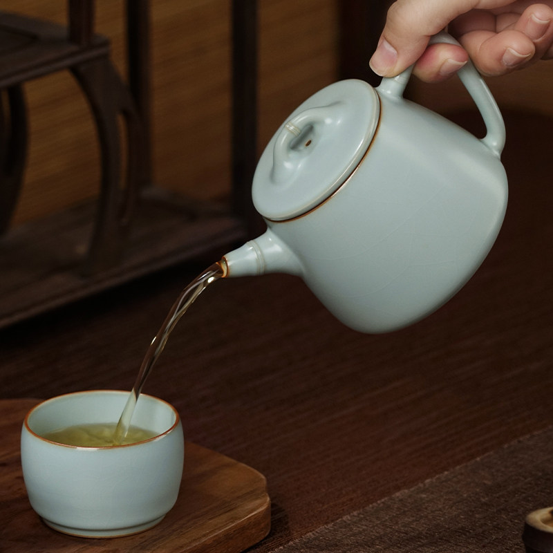 Ru kiln high stone scoop pot can be raised in Jingdezhen teapot single pot ceramic retro celadon handmade Ru porcelain gift box