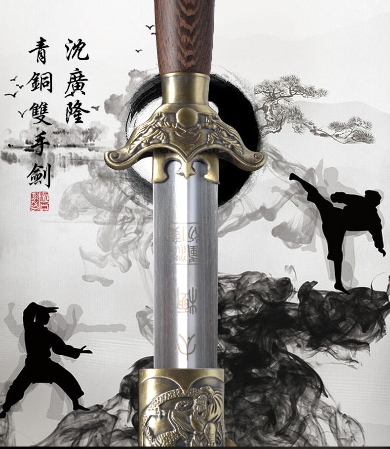 Bronze martial arts two-handed sword mantis sword two-handed sword gossip sword stainless steel Shen Guanglong sword unedged