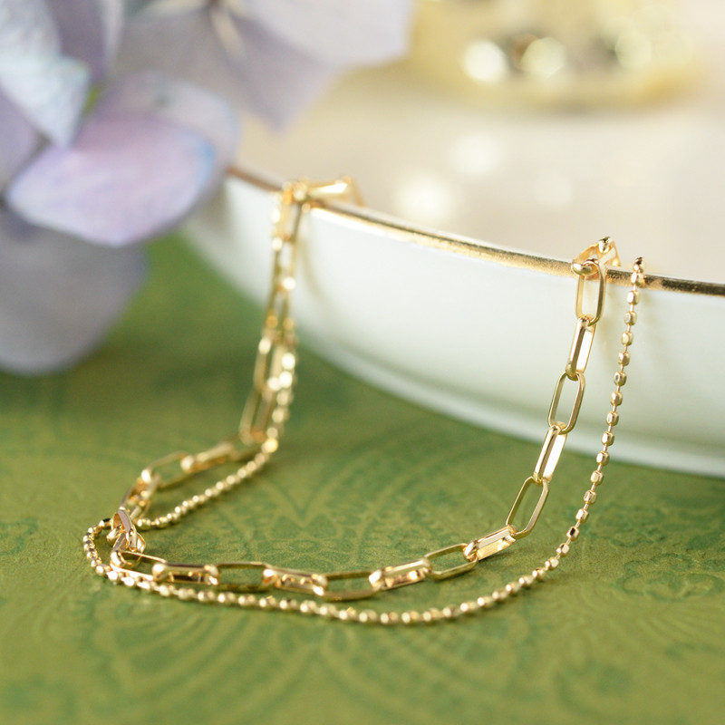 Fashion Double Layer Chain Japan Manufactured Goods 18K Gold Roman Chain Round Pearl Chain Vegan Gold Bracelet Necklace