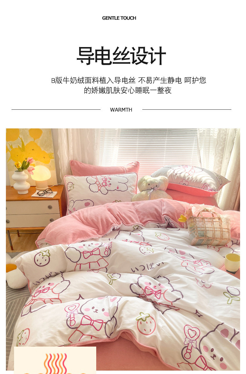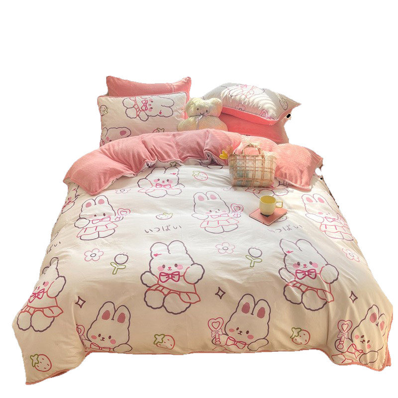 Coral velvet four-piece winter milk velvet flannel plus velvet cotton pure cotton autumn and winter quilt cover sheets three nights school