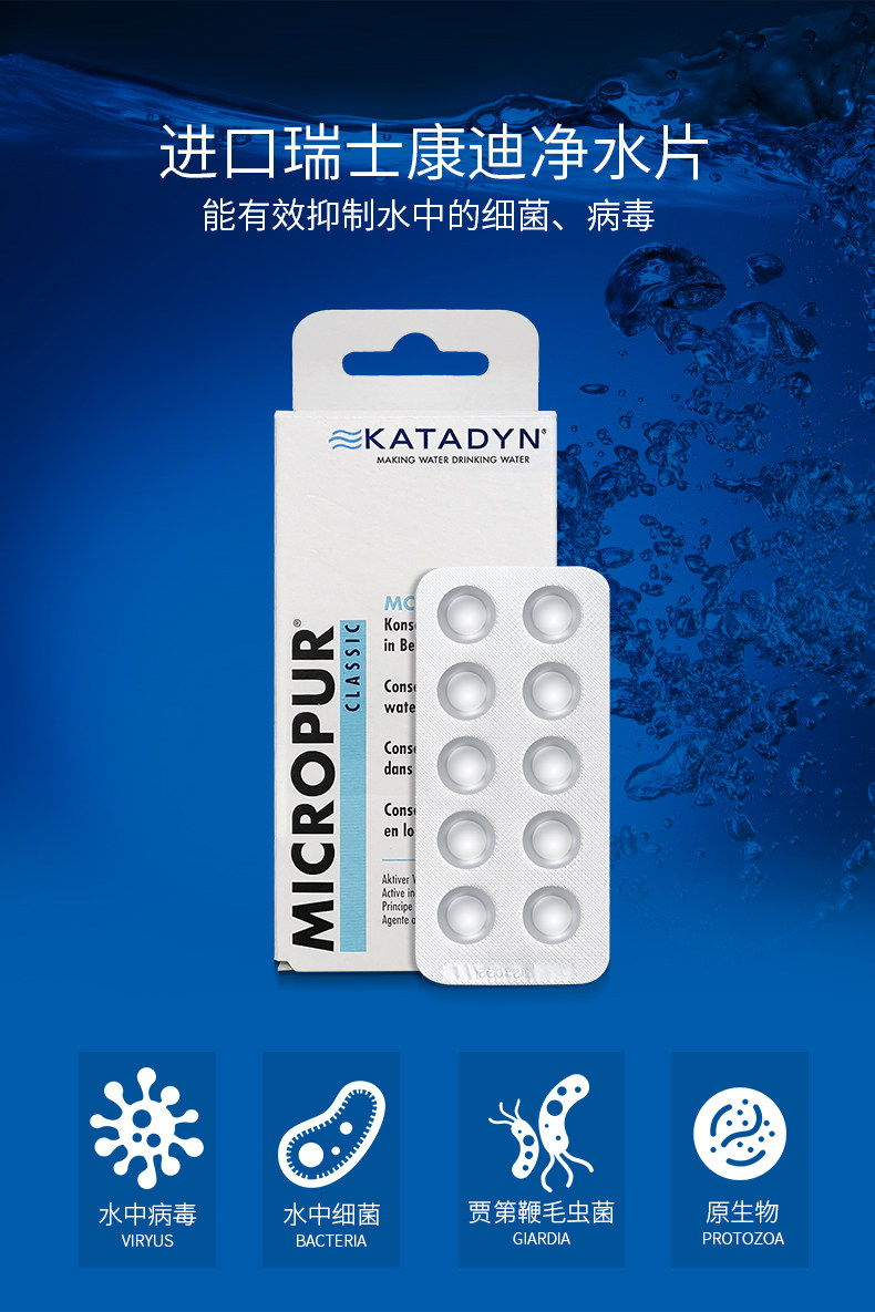 Swiss imported Katadyn Kandi outdoor emergency disaster preparedness water purification tablets 40 grains edible grade 1 grain purification 10L water