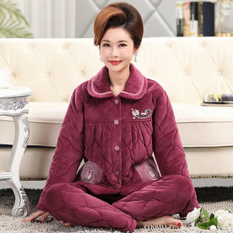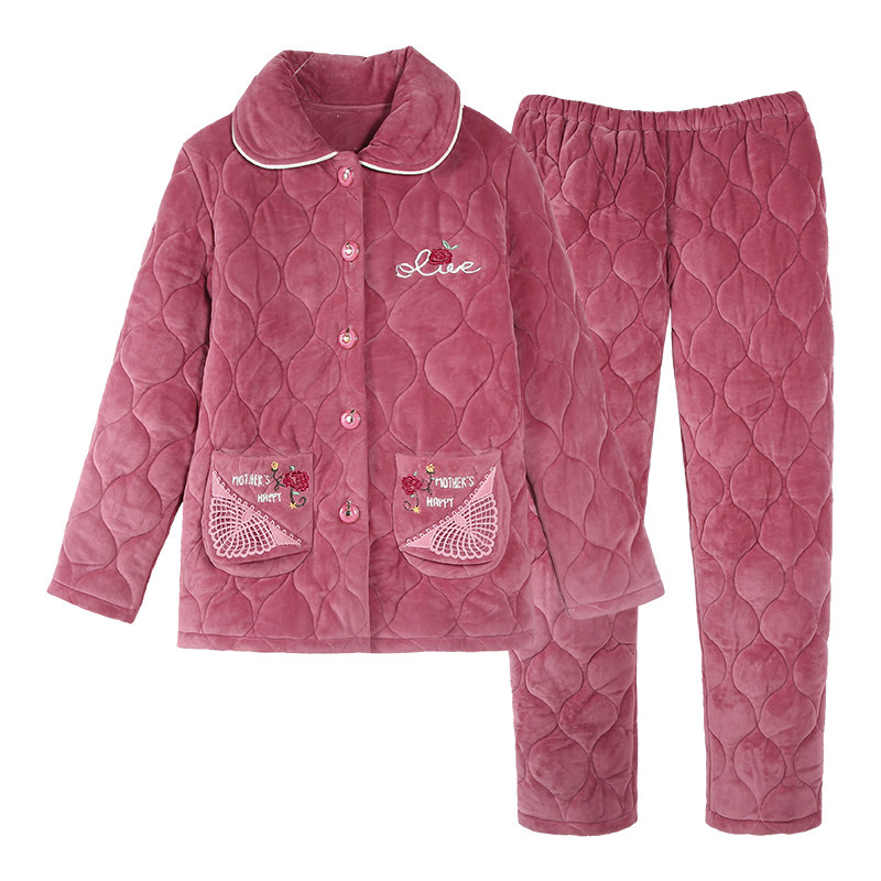Middle aged mom Sleeping woman Winter three-layer thickened Garsuede Coral Fleece Clip Cotton Winter Old Clothes Suit Suit