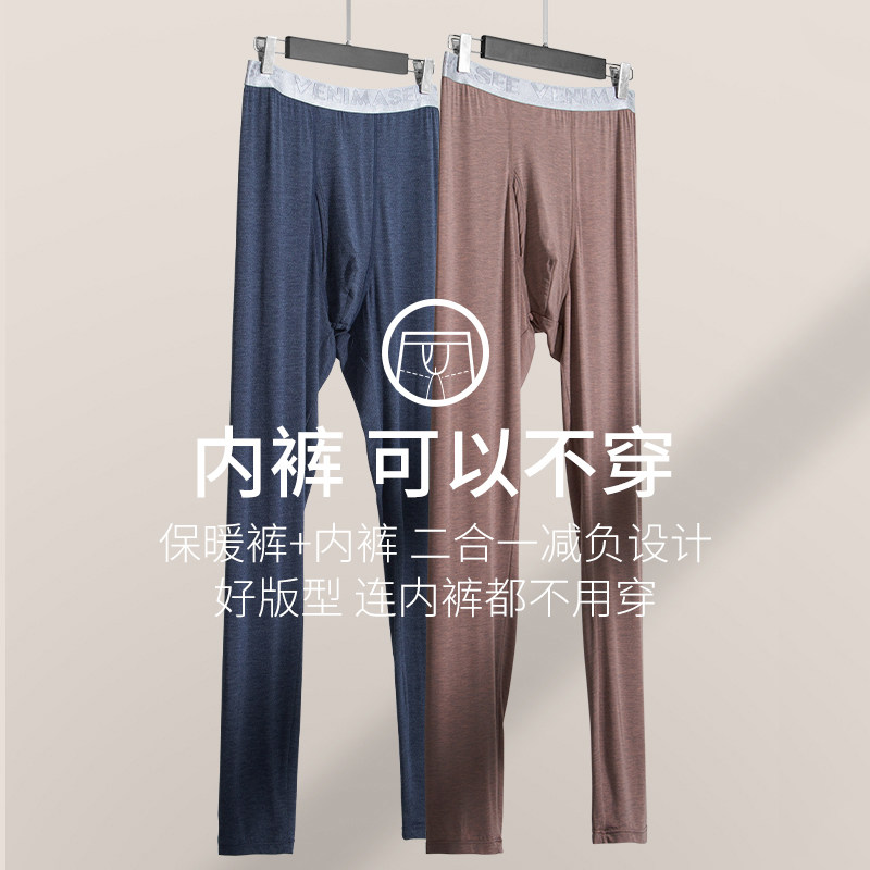2021 New sanitary pants Men's thin style Autumn Winter Pure Color Beating Bottom Fever Sanitary Pants Slim warm Silk Smooth Glossy inner lap pants