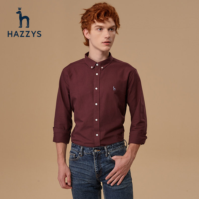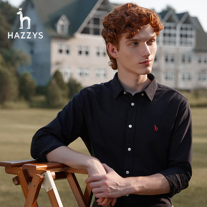 Hazzys haggis autumn winter business shirt men's loose long sleeve men's new solid color shirt coat men's