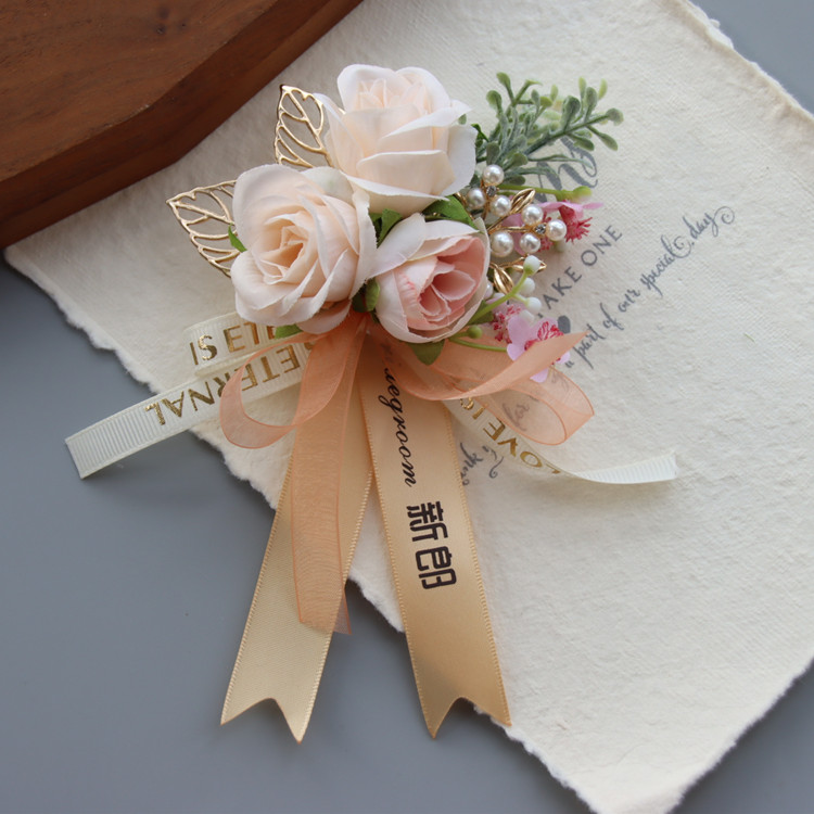 Original light white champagne Champagne Flowers Son Ensemble Leaf Groom Wedding Bridesmaid Business Chest Floral Activity Handflowers