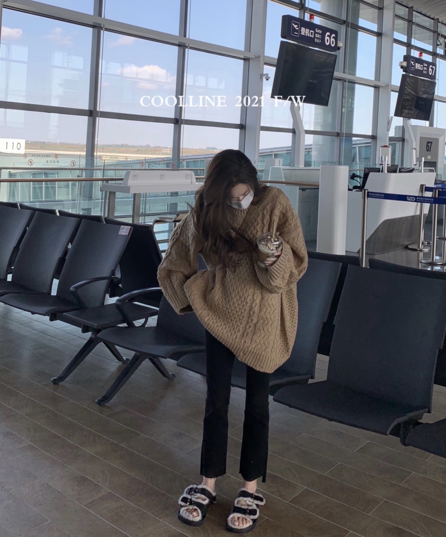 COOLLINE Lin Zixi airport sweater Korean style lazy style heavy oversize