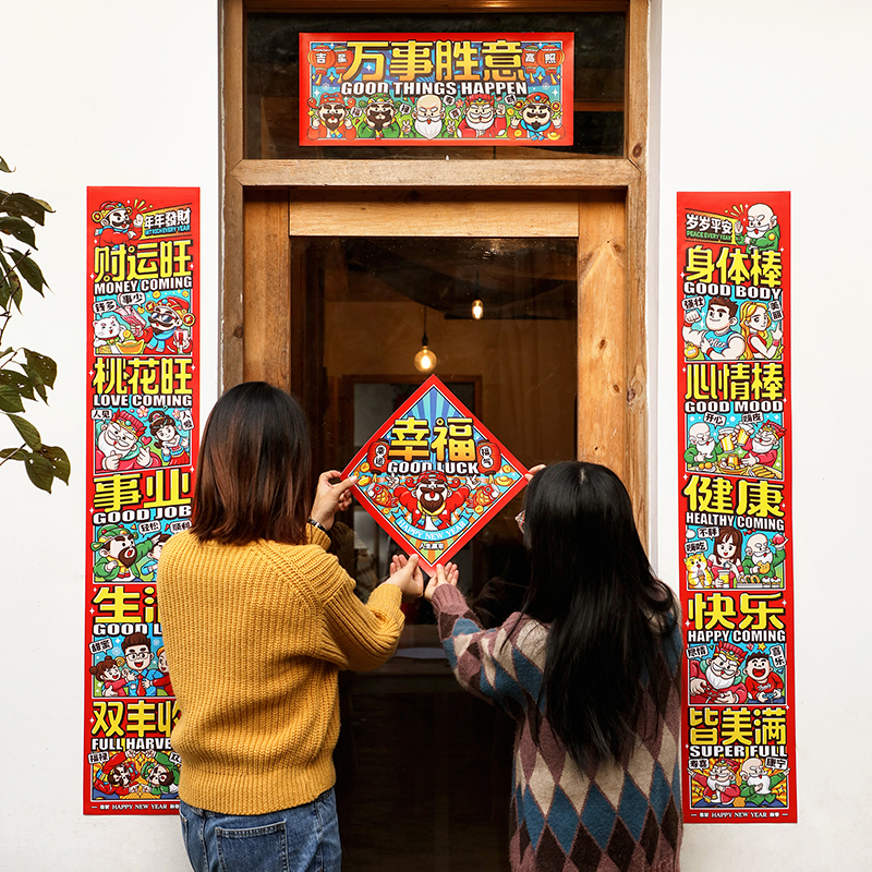 2023 Couplets Spring Festival Home Year of the Rabbit Guochao Fu word door stickers New Year creative door Spring Festival couplets high-end group purchase customization