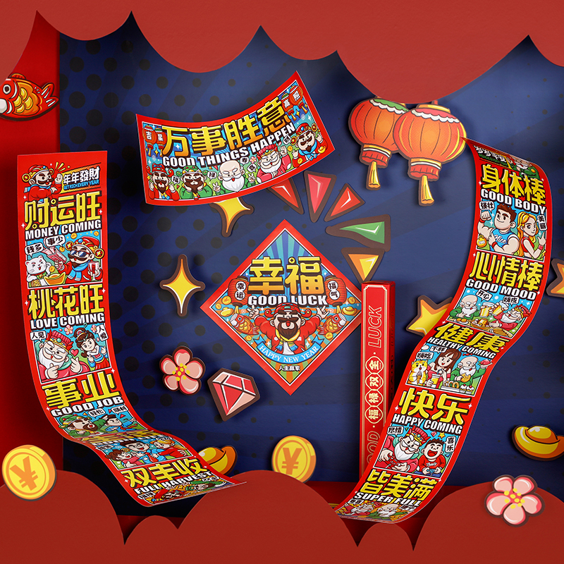 Success in all things (left and right joint, horizontal batch, blessing character), good luck in everything (left and right joint, horizontal batch, blessing character), happy home (left and right joint, horizontal batch, blessing character)