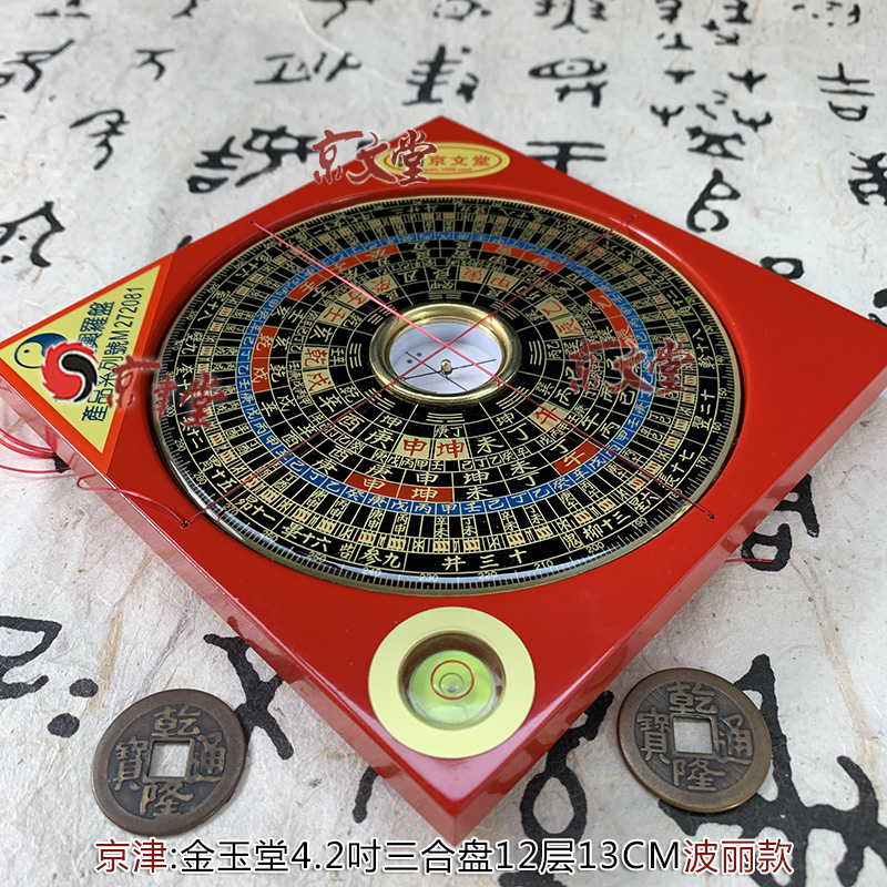 Taiwan's Jin Yuang Feng Shui Compass Original 4-inch 2 Yang Gong Tried disc 12 Layer 13CM brass Electric wood Poli New