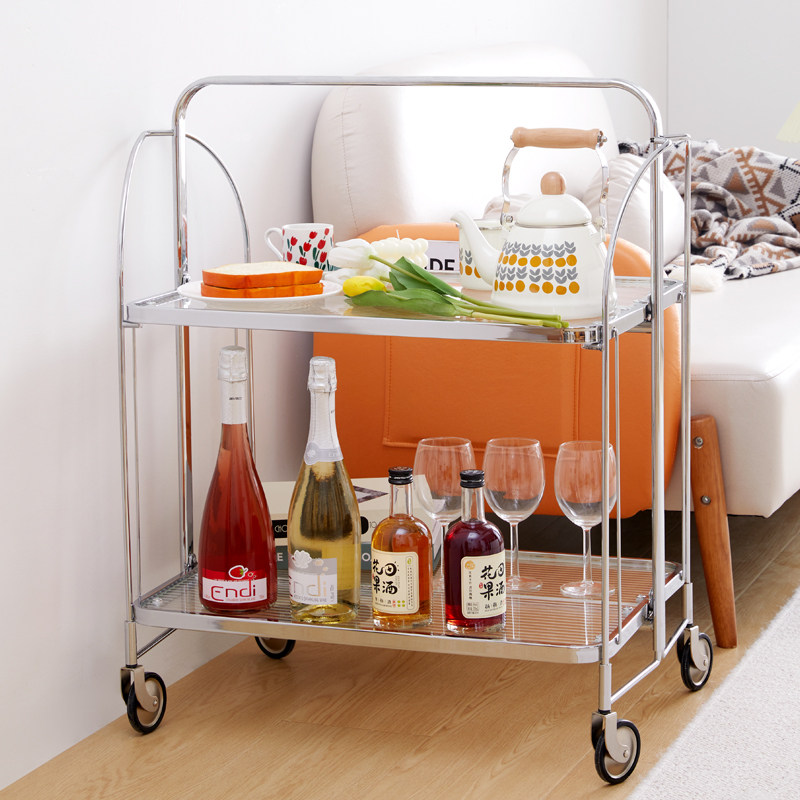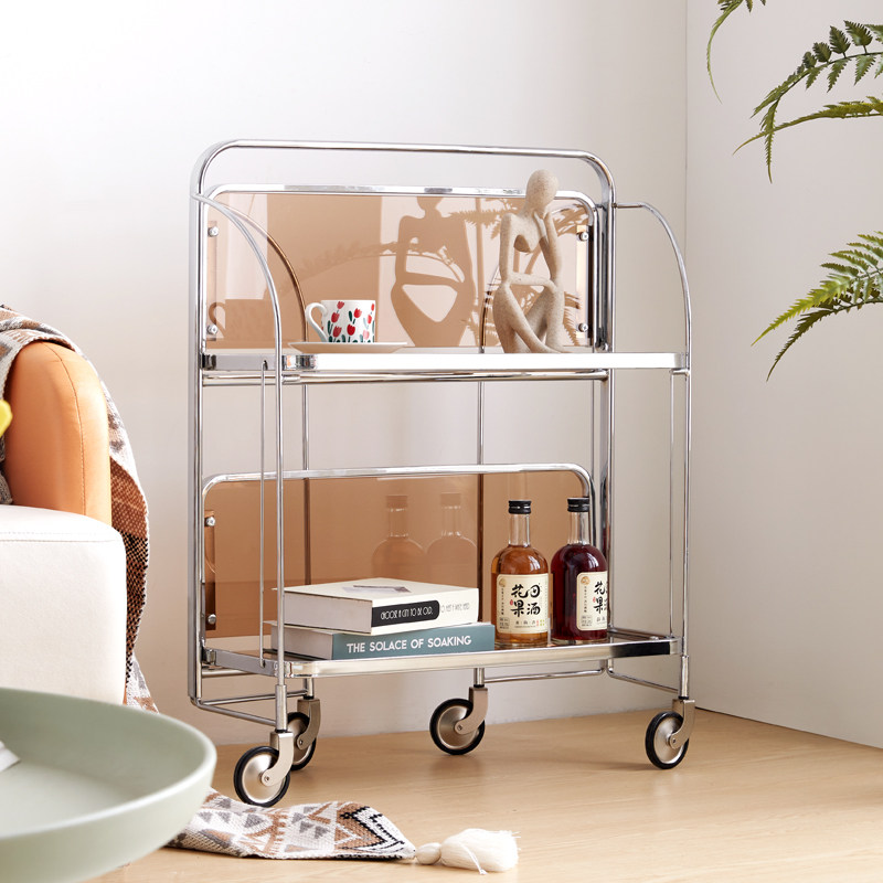 Medieval folding trolley storage multi-layer coffee table rack glass side table light luxury net red ins mobile dining car