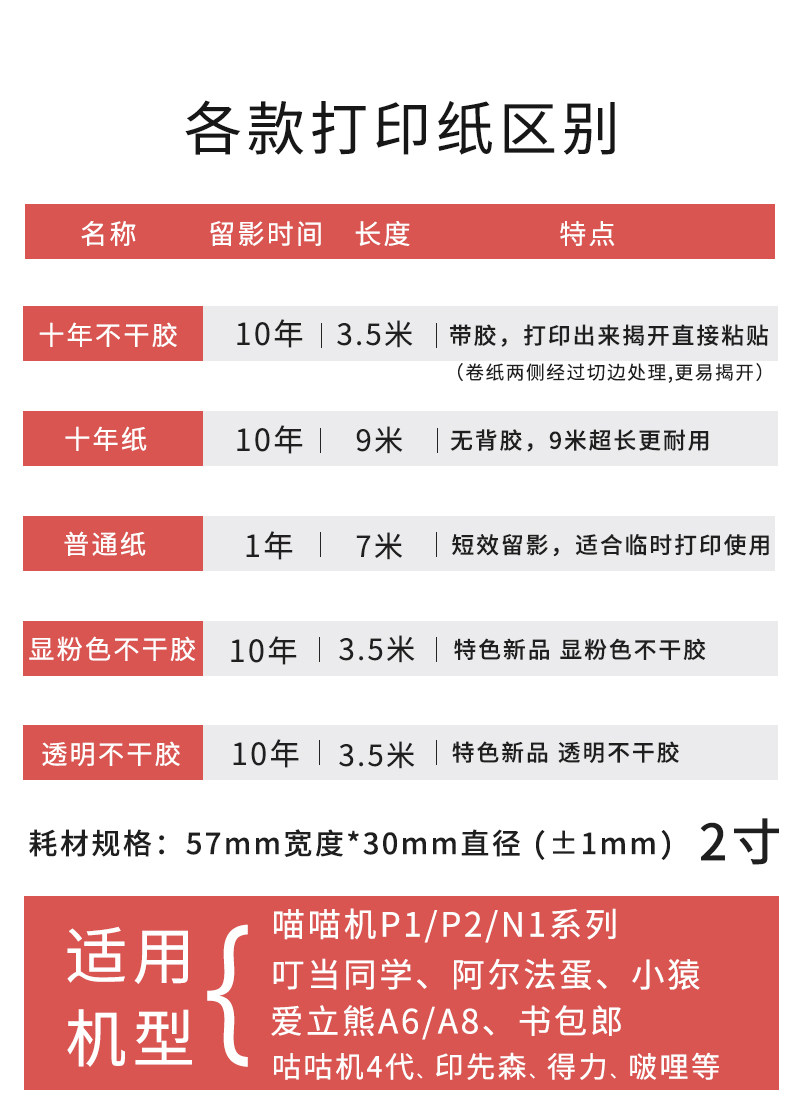 The following specifications are all 57mm wide * 30mm diameter plain paper short effect Unstuck Bulk 6 Rolls Common Paper Short Effect Live-in non-stick Bulk 12 volumes (official quality) ten
