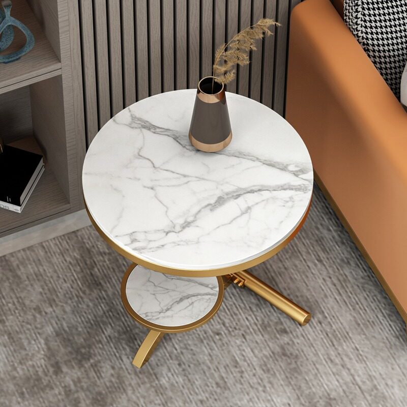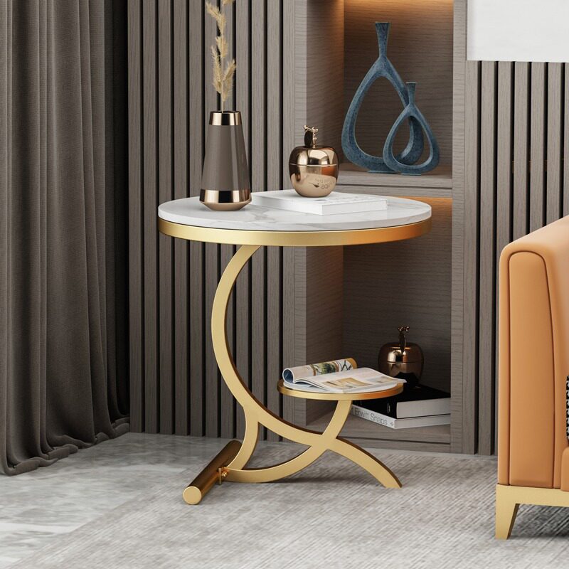 Light luxury rock plate moving edge of a few modern minimal living room household small round table flowers several Nordic balcony network red corner