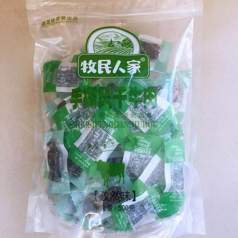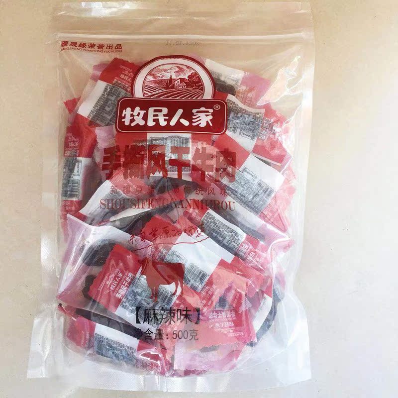 Beef salt spices pepper cumin chilli powder refined vegetable oil of granulated sugar and sticky rice starch such as for more information, see packaging