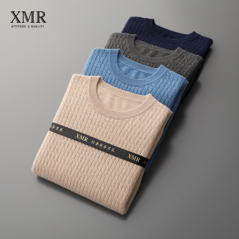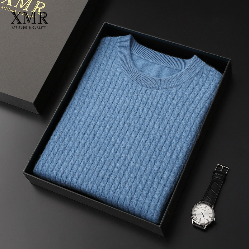 Soft Glutinous cashmere sweatshirt male 100 pure cashmere round collar needlework weaselloff winter warm sweater Mountain cashmere undershirt