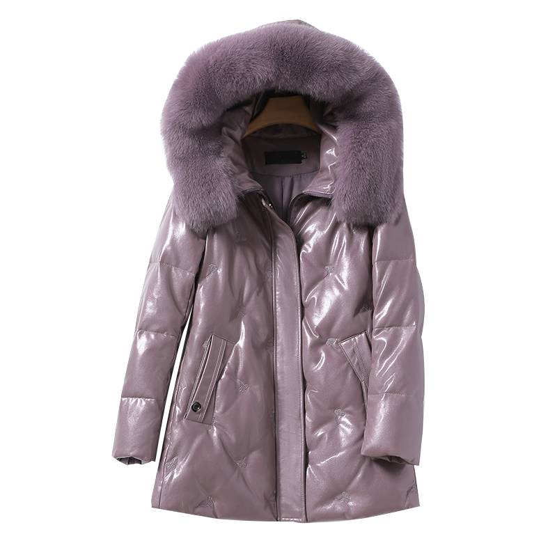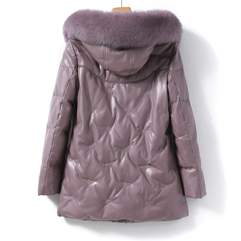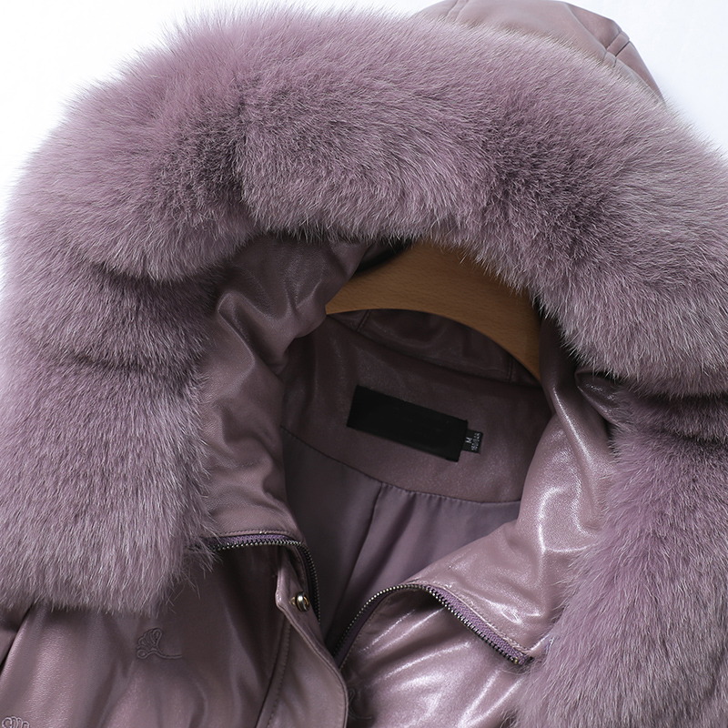 Leather clothes down jacket woman mid-length hat fox fur collar Hainen genuine leather large size white duck suede sheep leather Outer cover Anti-season