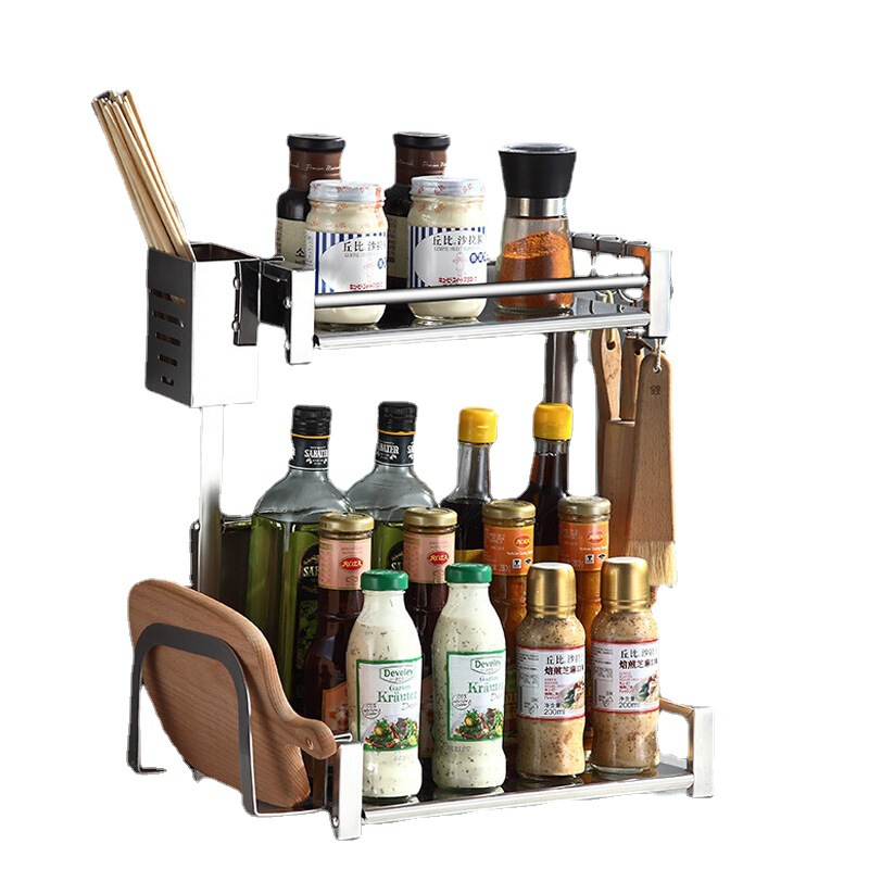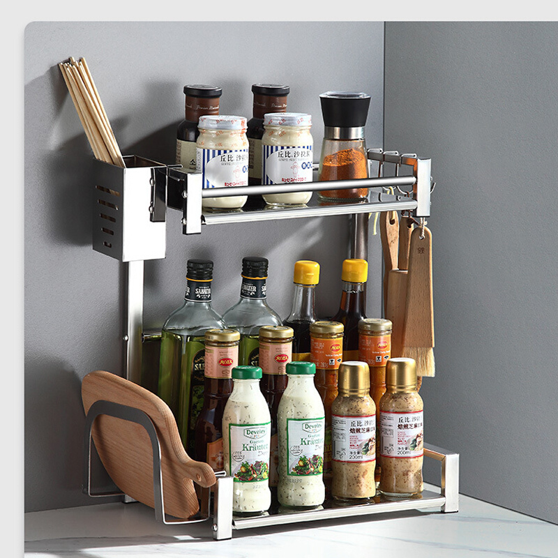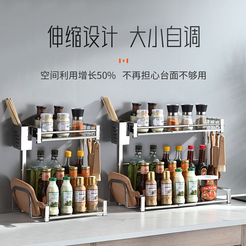 Baijie stainless steel rack household countertop kitchen telescopic storage layer rack seasoning tank rack chopstick tube Sundries