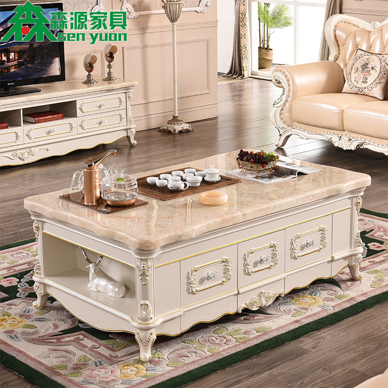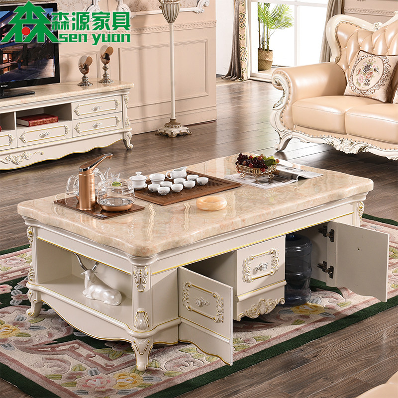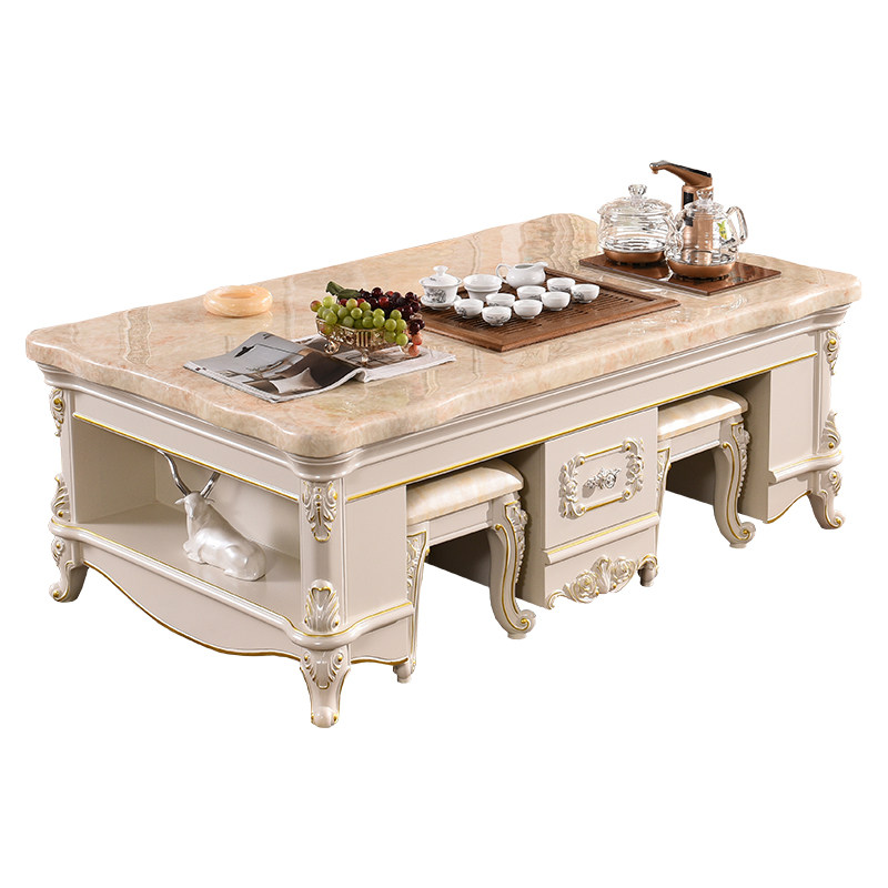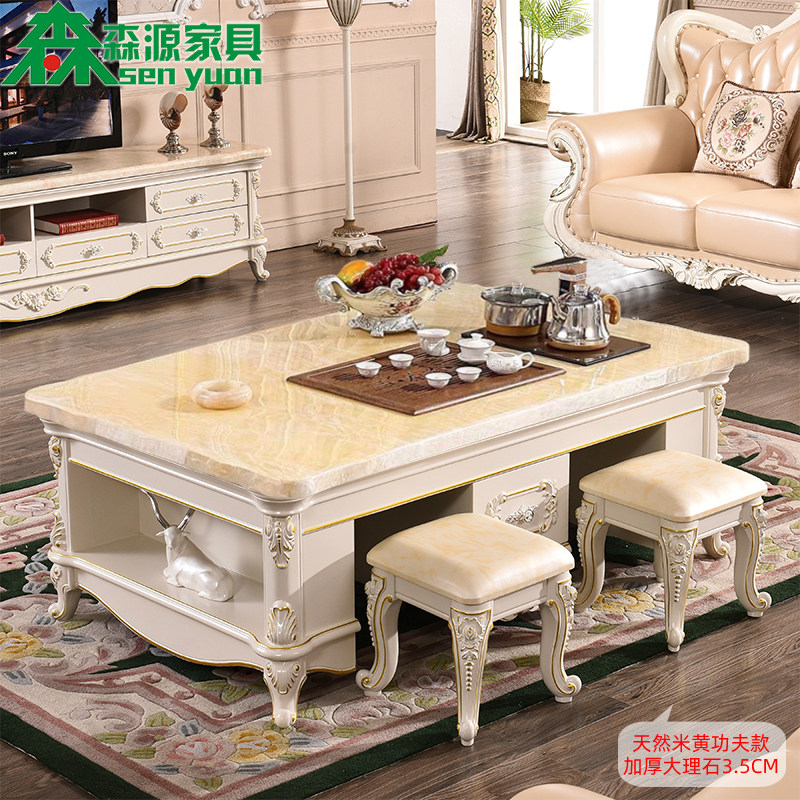 European style marble kung fu tea table solid wood square tea table white automatic water supply modern living room TV cabinet combination