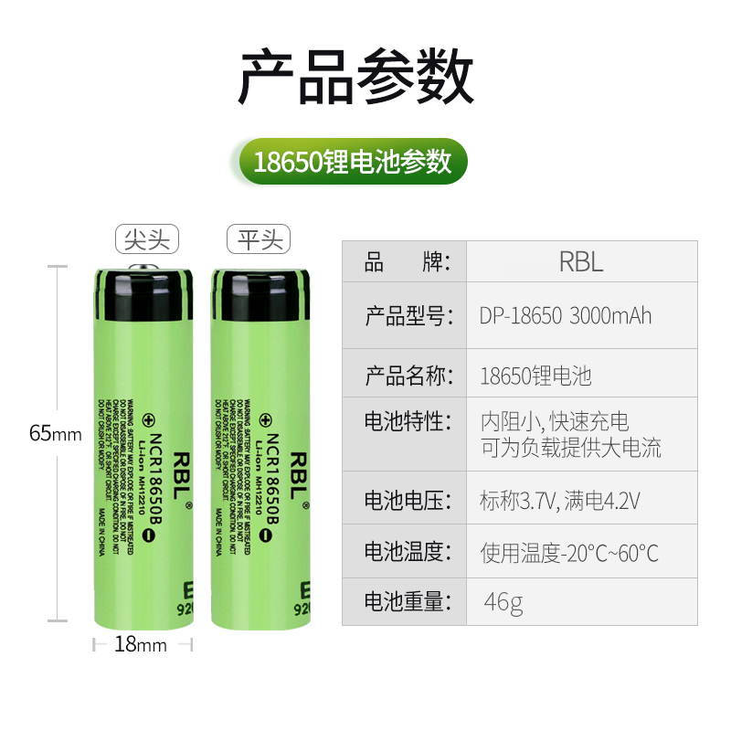 RBL Panasonic Battery 18650 26650 Power Lithium Battery Large Capacity 3 7v Flat Tip Protection Panel Strong Light Flashlight Flashlight Flashlight Power DIY Little Fan Charger Multi-function 4 2