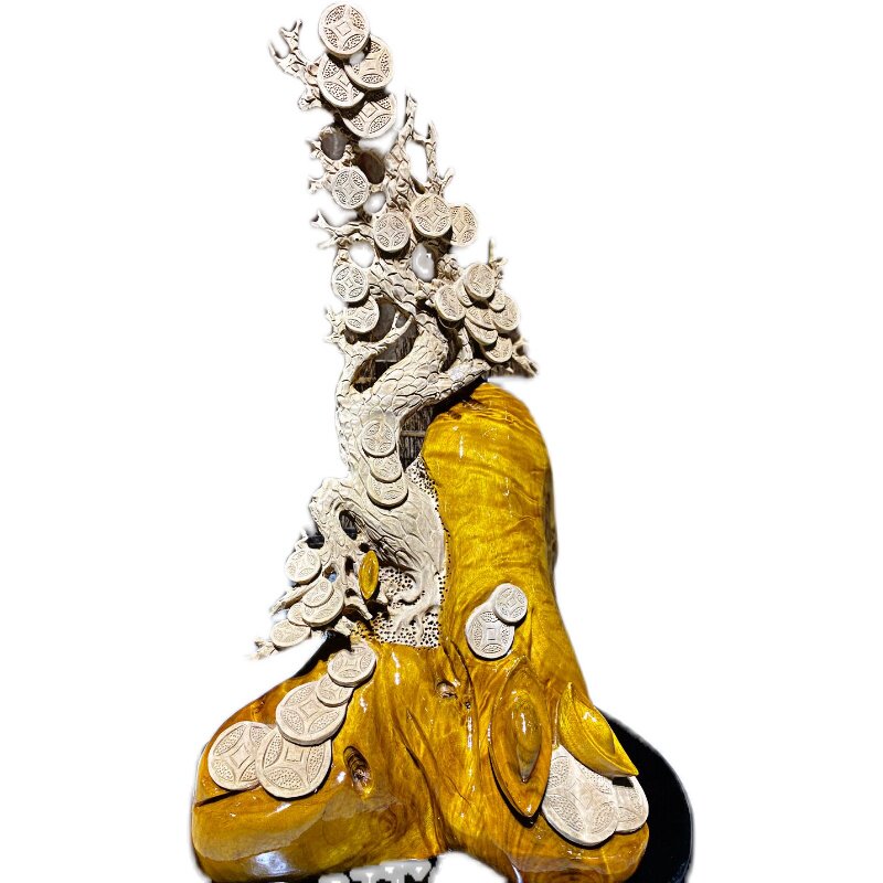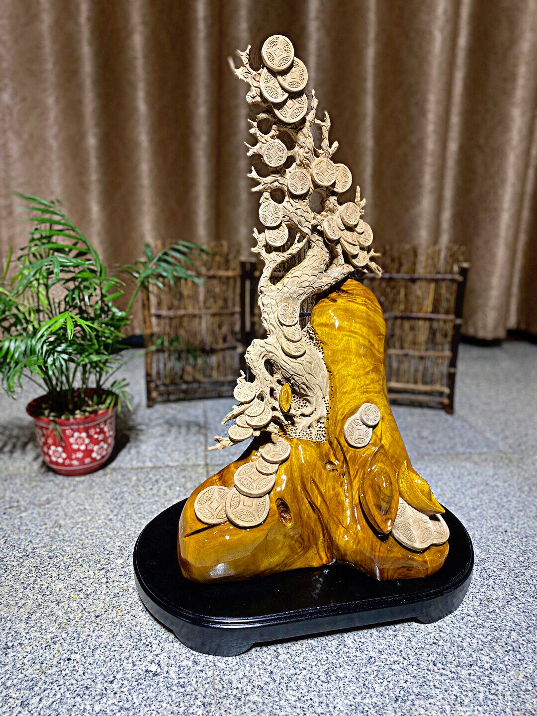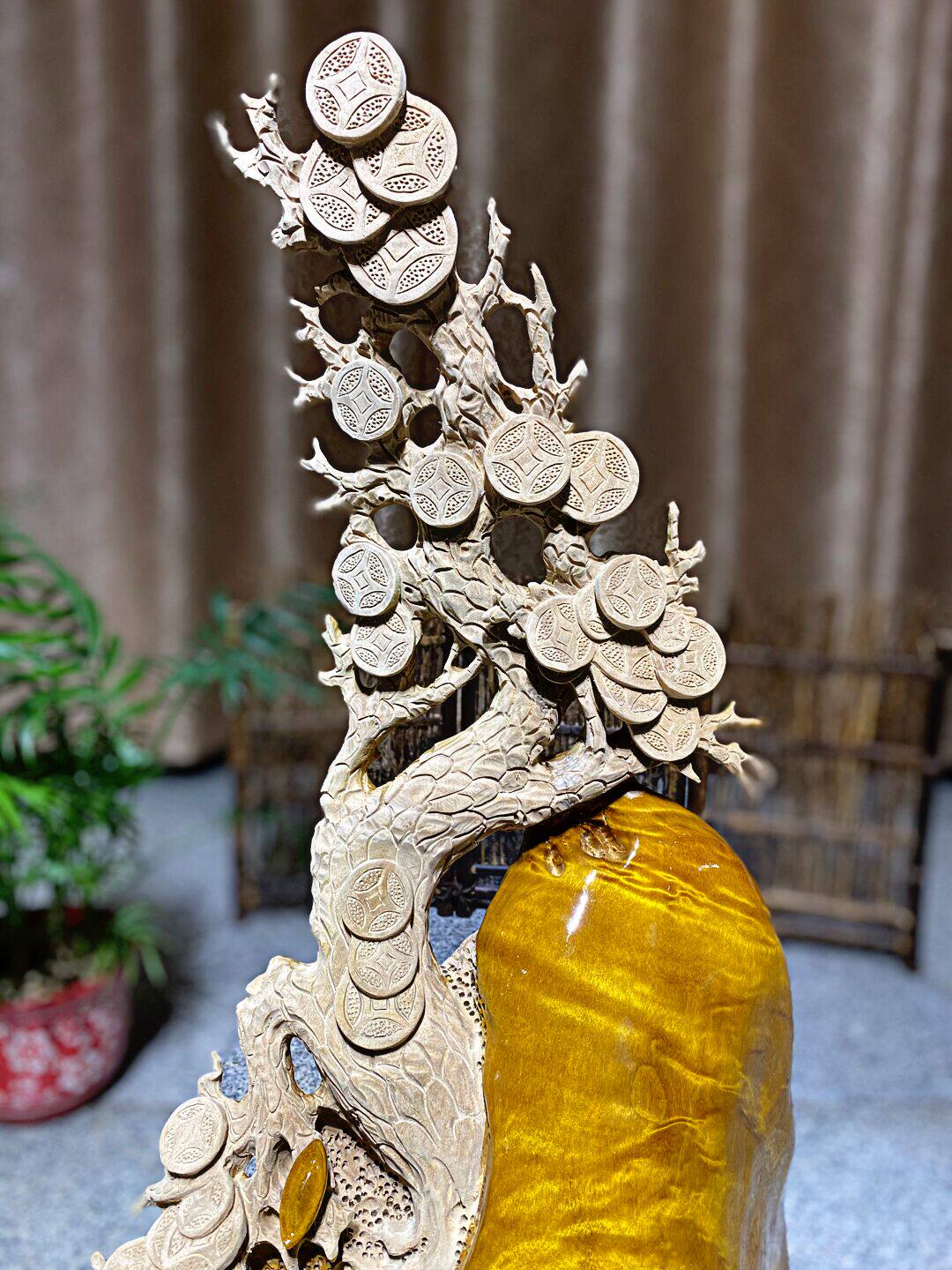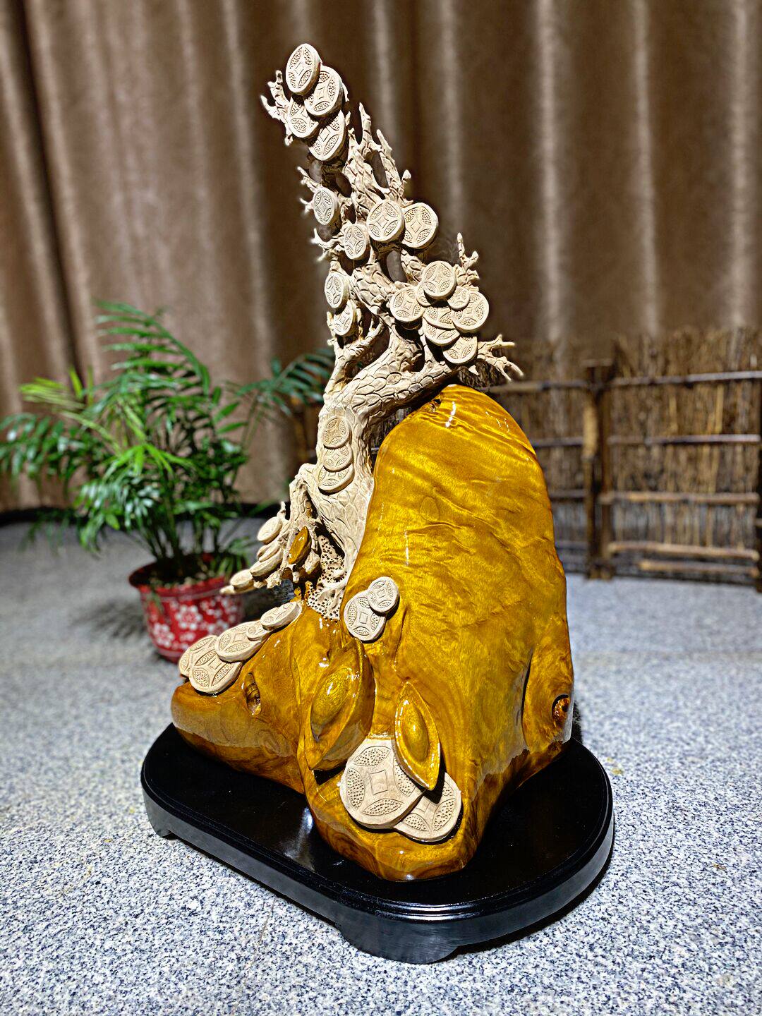 Golden nan lobular nan wood carving crafts lucky tree money tree fortune tree home shop office decoration gifts