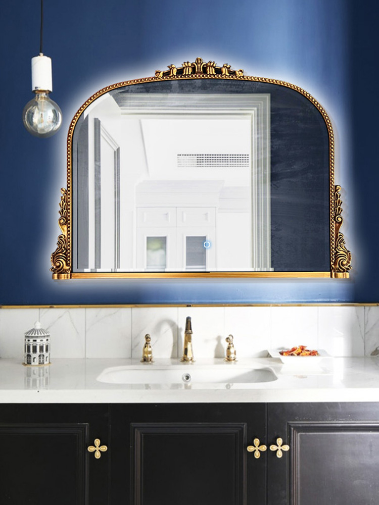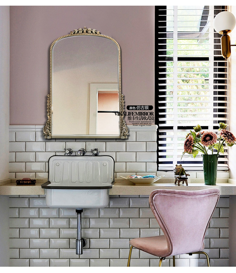 Face-style retro light and luxurious arched European style bathroom with mirror hanging mirror toilet dresser Cosmetic Mirror Sculpted decorative mirror