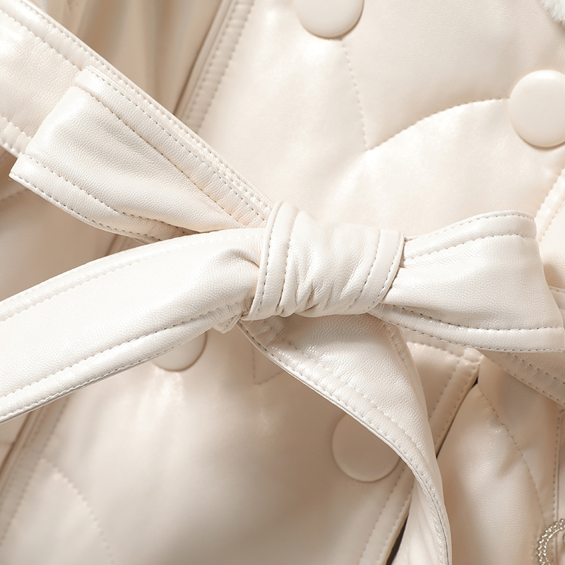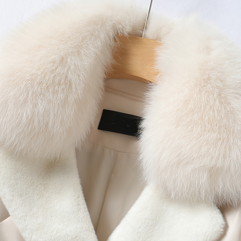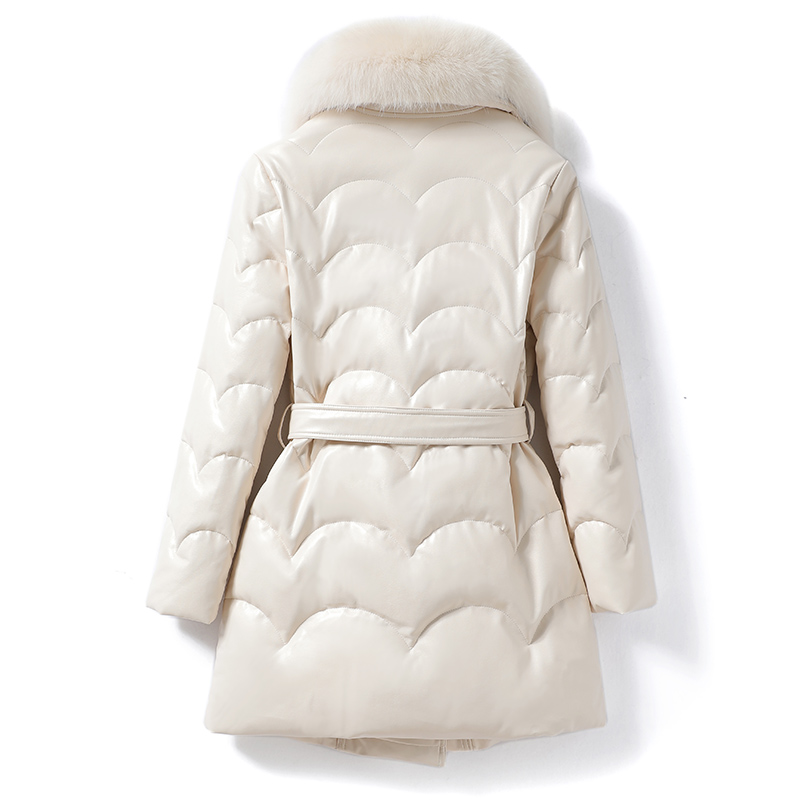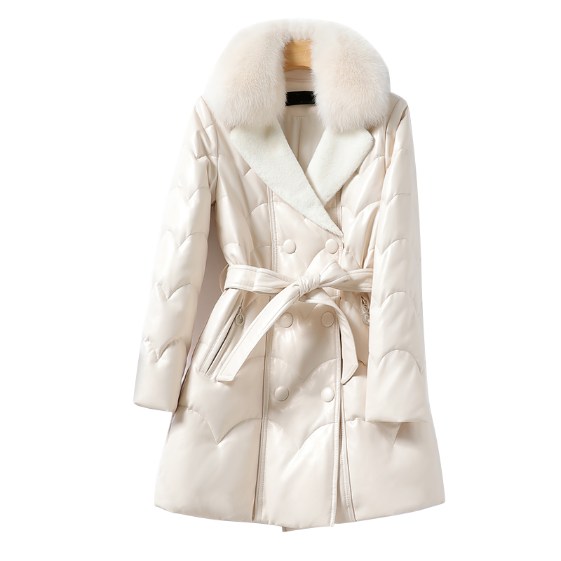 Leather duvet fox fur collar with long lacing sheep leather genuine leather jacket woman anti-season white duck suede female fur coat small