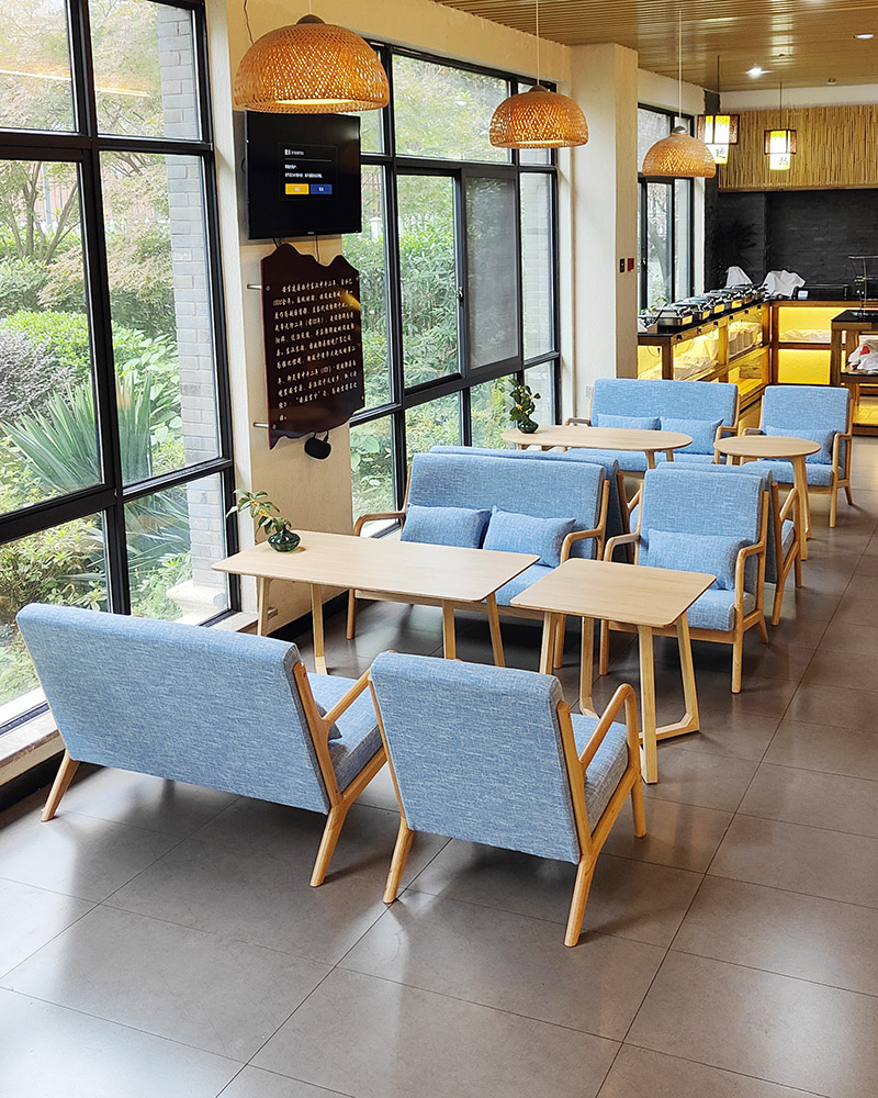 Two single chairs Small square table (hessian fabric) Two single chairs Small round table (hessian fabric) Two double chairs Rectangular table (hessian fabric) Two double chairs Oval table (hessian fabric)
