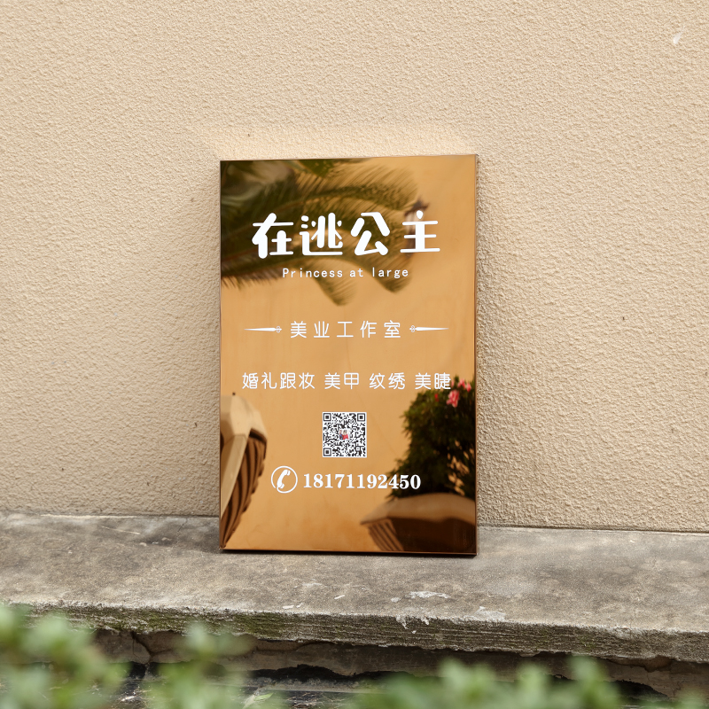 Stainless steel billboard mirror logo signboard is customized to be the company's front door store clothing store plaque display board