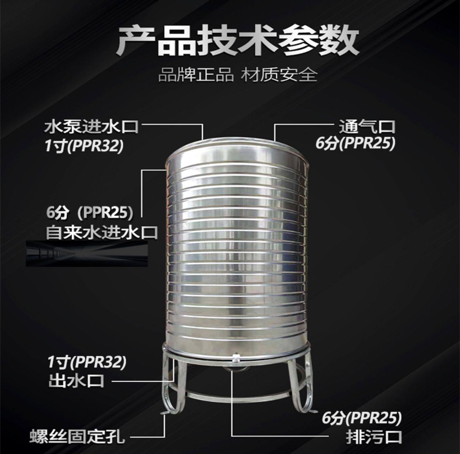 Stainless steel 304 water tank thickened vertical water tower outdoor water storage bucket solar home roof large capacity water storage